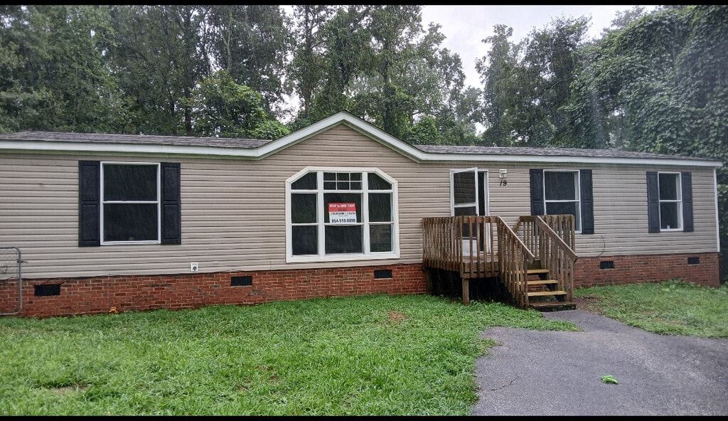 19 Barnhart Ln Fountain Inn SC 29644 Large Open spacious floor plan PLEASE READ the ENTIRE AD FIRST as we have answered most questions here AND PLEASE DO NOT ask if the home is still available-WE WILL REMOVE THE AD AS SOON AS WE RECEIVE A DEPOSIT Nice PRIVATE wooded setting on large 1.1 acre lot with Fenced Backyard Spend your leisure time enjoying the breeze on your deck overlooking the large back yard 1568 Living square feet Permanent Brick Foundation Kitchen with Island Double Wide Home was built in 1999 Fenced Yard Pictures will be updated as work is complete. Spacious Kitchen with lots of cabinet and storage ALL ELECTRIC Central Heat and Air New Luxury Vinyl Plank Flooring throughout NEW ROOF Just putting on finishing cleaning and touch ups Will update the pictures as the work is finished LARGE Master Bedroom that has Master bathroom with garden tub, Dual Vanities and Stall shower STOP THROWING AWAY MONEY PAYING RENT AND NOTHING TO SHOW FOR IT! Close and convenient Greenville, a short drive to I-385 Available For Occupancy IMMEDIATELY Must see to appreciate Please DRIVE by the home FIRST, LOOK through the windows. If further interest to see the inside, please send 2 TEXTS First just your email address ONLY and 2nd just "19 APP" to phone number listed so we can get you prequalified. We do not charge for this process. Once approved we can arrange a time to show you the inside of the home. Available for Rent with $1,525 First month rent and $1,525 Security Deposit and $1,525 Last month rent. Additional security may be required if self employed, Less than 2 years at your job, previous collection/eviction action, etc.) Minimum total needed for move in $4,575.00. You will need to verify at least $4,500 monthly take home to qualify. Available RENT with Option to Purchase with $4,000 Option Fee AND $1,525 per month for 24 months. We will credit $100 per month over the next 24 months of all on time monthly payments and apply it against the purchase price of $269,900. We also will credit the $4,000 option fee AND we offer OWNER FINANCING after 24 on time payments. NO BANK QUALIFYING! TOTAL NEEDED FOR MOVE-IN $5,525.00 YES you can begin renting and convert over to a Rent with Option when you deliver the full Option Fee. We honor the terms and pricing for 3 months, after that time prices are subject to change. You will need to verify MINIMUM monthly take home pay of $4,500 to qualify. We typically look for 2 years on your job to qualify as well on the Rent with Option terms. ANIMALS are considered on a case by case basis ABSOLUTELY NO VICIOUS BREEDS per our insurance company. Cost is $30 per month per pet plus $300 non refundable Pet Accommodation Fee per pet whether they are inside or outside. NO we will NOT work with you on the Security Deposit NO we do not Accept Section 8 or HUD Vouchers It doesn't get any more flexible than this! Call Rob NO SPAMMERS