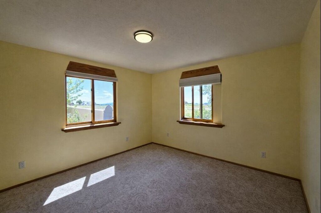Welcome home to the community of Eldorado of Santa Fe. This spacious three bedroom, two bathroom house is updated and inviting, with high ceilings through the generous living spaces. The vigas on the wooden ceilings create a charming New Mexico feel as soon as you walk in the doors. The kiva gas fireplace will keep you cozy and warm in the winter, along with in-floor radiant heat. The main bedroom with an ensuite bathroom is separated from the two additional bedrooms and the secondary bathroom. There are closets galore in this home, along with a two car garage with great storage space. The main bedroom has a walk-in closet and a bonus area for flexible use. There is a laundry room with more storage, and all the appliances in the home are updated, with a gas stove in the enormous kitchen, and granite countertops providing ample workspace. The front door and back door invite you outside with roomy and shady portals. The home is on the corner of two residential roads, with native NM plants across the landscape. The adobe-walled backyard features several shady trees and flower gardens, offering space to sit and listen, dream, watch, and breathe peacefully. The home is in a quiet neighborhood where wildlife may roam between homes, and the dark skies give you the gift of stars. Just 15-20 minutes from Santa Fe, this peaceful and comfortable retreat has a lot to offer. Brant Goodman, Qualifying Broker. Rental Fees & Policies Application Fee • $50 per applicant age 18 or older. Move-In Costs • Security deposit equal to one month’s rent • First month’s rent due at lease signing Pet Policy • $250 non-refundable pet administration fee • $50 per month, per pet Utilities • Tenants are responsible for establishing and paying all utilities directly with the utility companies. Renter’s Insurance • Tenants are required to maintain renter’s insurance for the full duration of the lease Contact: Katelynn James Landseer Management 613 Old Santa Fe Trail Santa Fe, NM 87505