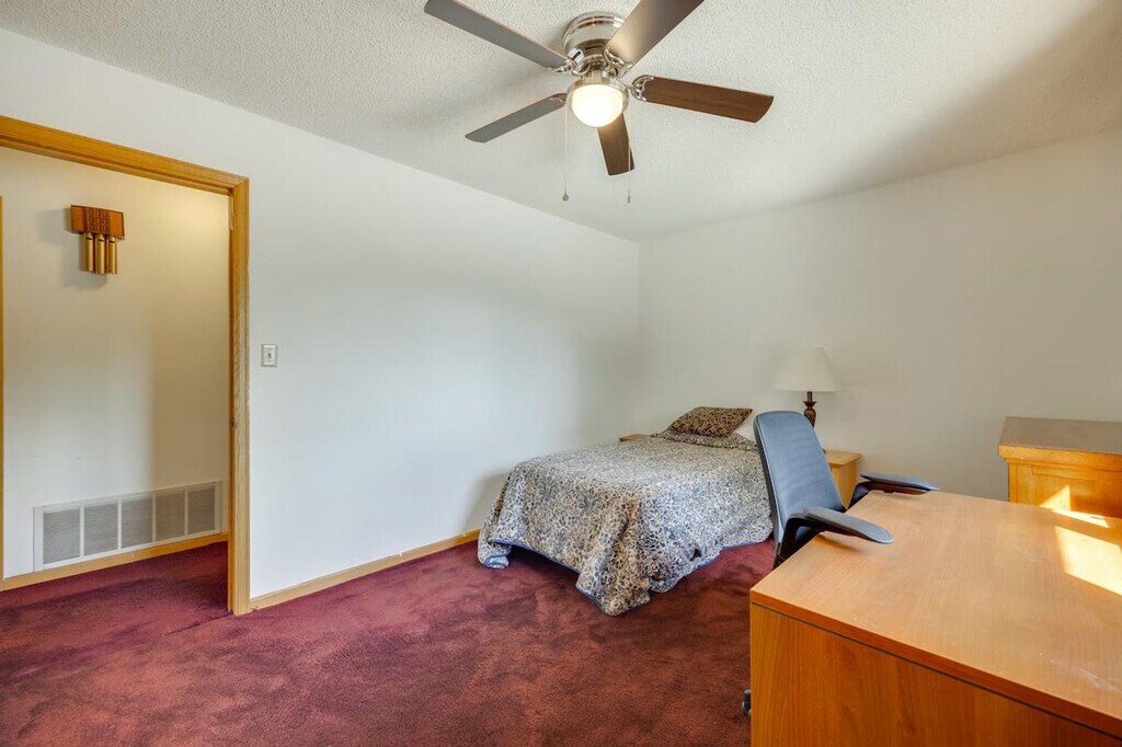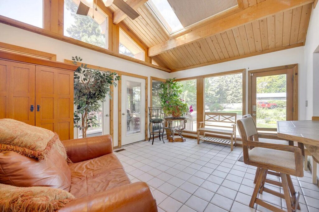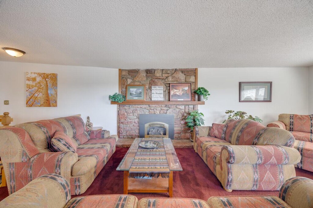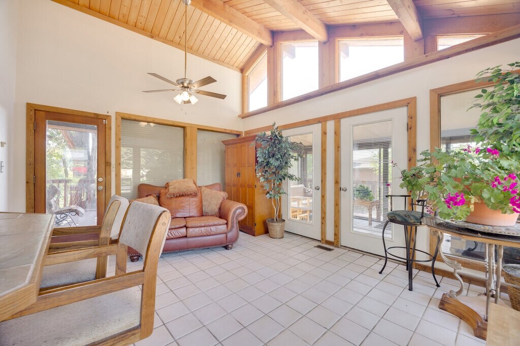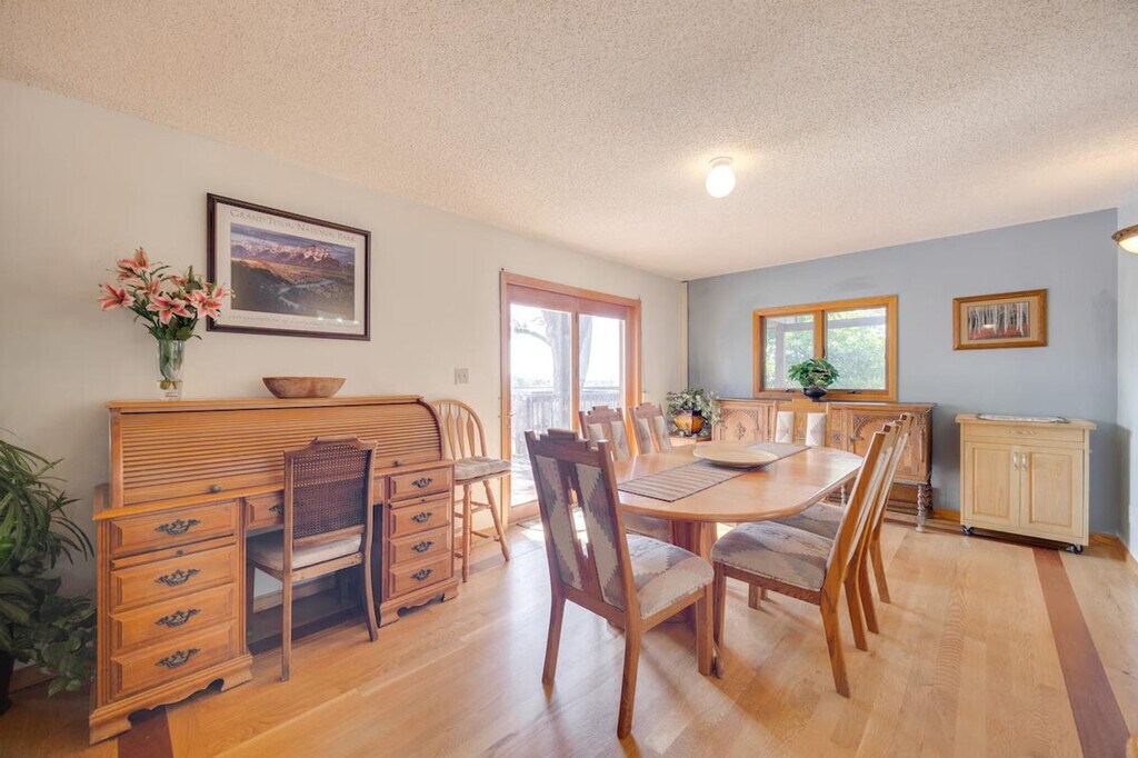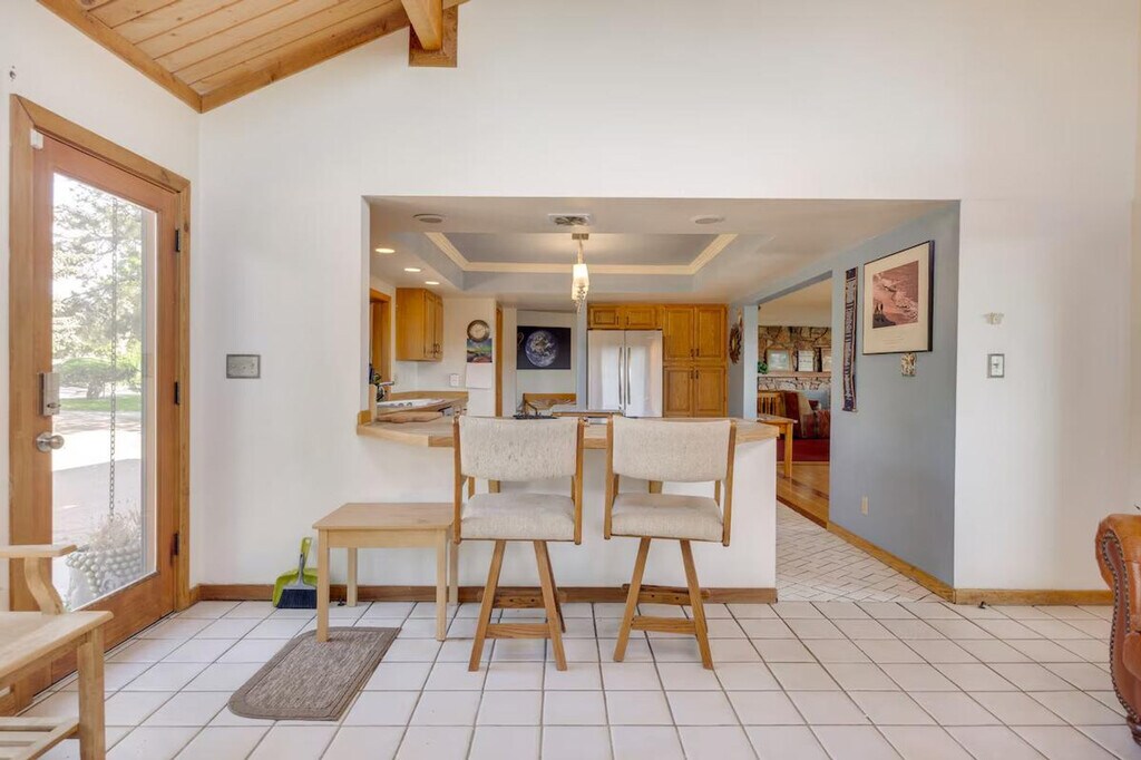 Feel at home in this 5-bedroom, 3-bathroom vacation rental in Colorado Springs, offering peace, quiet, and 55 acres of open space. This multi-story home requires steps to enter, but there are 2 bedrooms and 2 full bathrooms on the first floor. Every detail of this home invites you to relax. Enjoy the wraparound deck, private yard, balcony, and grill. There are also dining areas and a hammock for outdoor enjoyment. Inside, you'll find a TV, books, desks, exercise equipment, a jetted tub, a wet bar, a fireplace, and a dining table. The kitchen is equipped with cooking basics, dishware, flatware, a dishwasher, refrigerator, stove, microwave, coffee maker, and toaster oven. The apartment also features free high-speed Wi-Fi, central heating and A/C, and linens and towels. Pets are welcome with a $150 fee, plus fees and taxes, for a maximum of two dogs. Explore the trails behind the house or visit Garden of the Gods, which is just a short drive away. The backyard trails connect to 55 acres of protected open space managed by local Pikes Peak region, Palmer, and land trust. Local wildlife, including deer, hawks, raccoons, and other mountain animals, may be present at the property. No smoking, events, parties, or large gatherings are allowed. [SI]