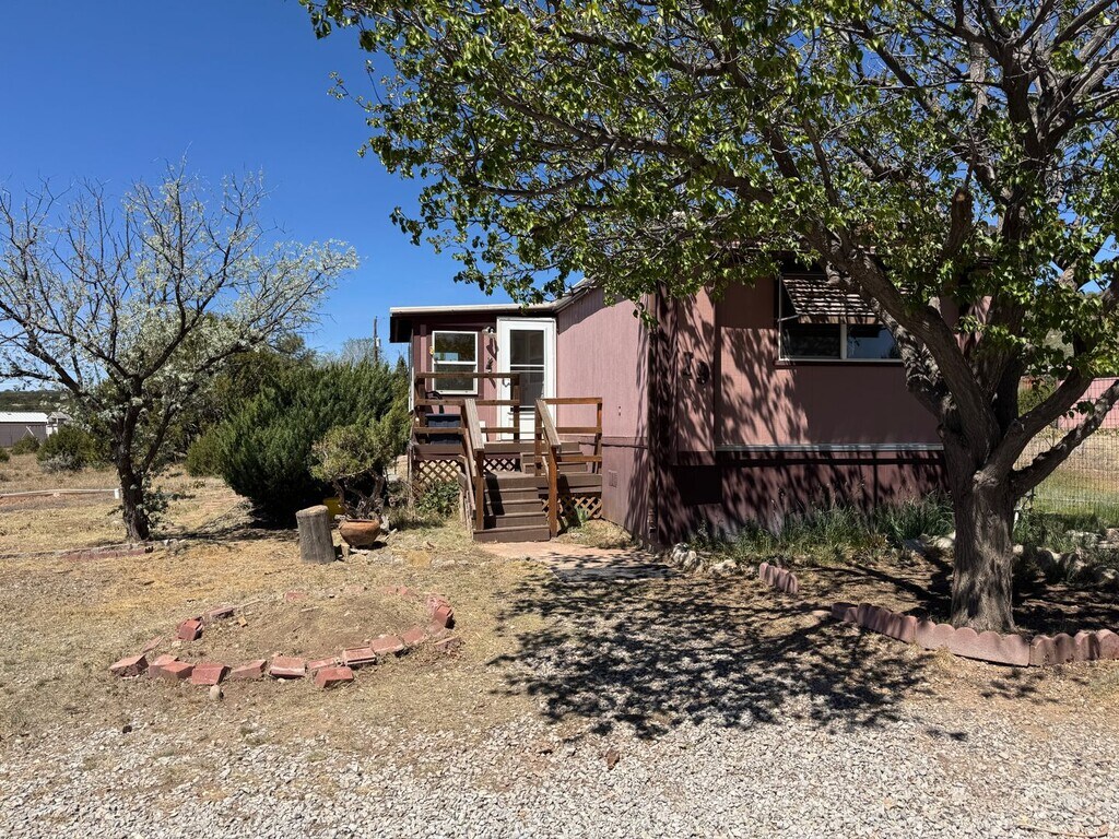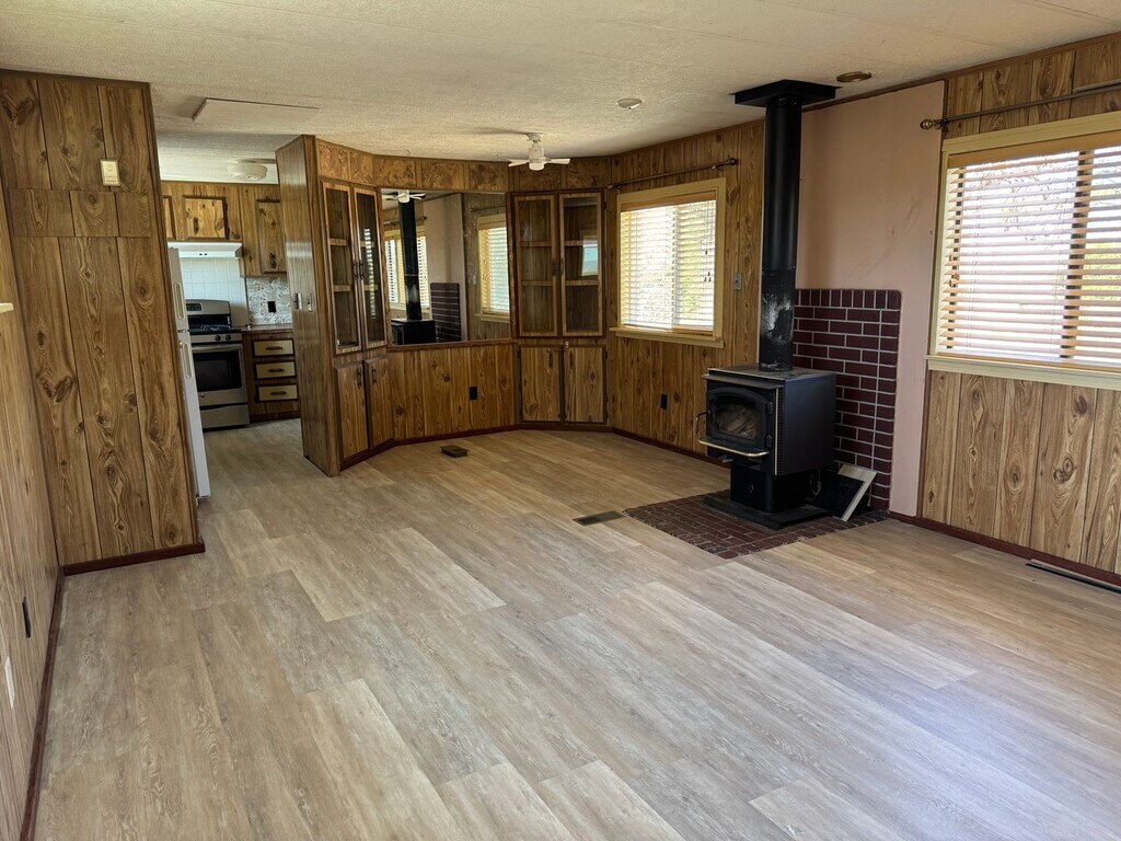 This 3 bedroom, 2 bathroom manufactured home opens to cozy living room with wood burning stove. 2 nice sized bedrooms and bathroom on one side and primary bedroom and bath on opposite end. Laundry area with washer & dryer. Sunroom, lush landscaping, fenced back yard, lots of trees, & shed. New flooring. Call Lee for more information or to schedule a showing, .