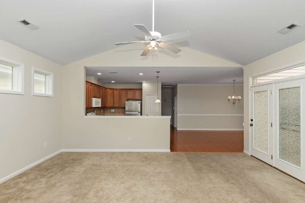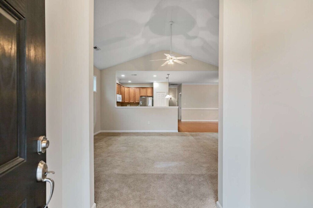 Located in Flowers Plantation, this well-designed 2 bedroom, 2 bathroom ranch offers comfortable, single-level living in one of Clayton's most sought-after communities. The open-concept layout features a vaulted family room with fireplace, creating a bright and inviting living space that flows seamlessly into the functional kitchen, complete with generous cabinetry, tile backsplash, and a convenient breakfast bar - ideal for everyday living and casual entertaining. The primary suite offers a private retreat with an ensuite bath, while the second bedroom and full bath provide flexibility for guests, a home office, or additional living space. Additional highlights include a 2-car garage and a private rear patio, perfect for relaxing mornings or quiet evenings. Residents enjoy HOA-maintained landscaping, eliminating yard work, and easy access to Harris Teeter, Publix, CVS, healthcare facilities, the YMCA, dining, and shopping - all just minutes away. This home is an excellent opportunity for tenants seeking low-maintenance, single-story living in an established community. Schedule your showing today.