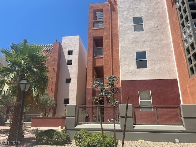 Great end unit with large balcony. All new blinds in unit, new refrigerator, large great room with split bedrooms. This condo is in a midrise, guard gated community with amazing community features including pool, common outdoor areas, large workout facility. Parking is in an underground garage and guest parking next to the building. Very nice and well maintained community. Close to the freeway and strip. This place offers more than a place to put your bed but gives you a great lifestyle!