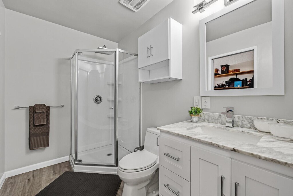 Welcome to this beautifully remodeled 3-bedroom, 3-bathroom home in the sought after Park Pacifica neighborhood. Situated at the end of a court, this home offers a comfortable living experience with a variety of features to enjoy. The kitchen is a chef's delight, equipped with quartz countertops, commercial grade appliances including a Thermador gas/electric oven/range, Miele refrigerator, Miele dishwasher, Viking microwave, hood over range, and a modern island with waterfall quartz top that provides ample space for meal preparation. The flooring throughout the home includes luxury vinyl plank floors, tile, and carpet, offering both style and comfort. Enjoy cozy evenings by the quartz wrapped fireplace in the living area, perfect for relaxing or entertaining guests. Downstairs you will find a large bonus room, full bathroom and walk-in closet that can be used as a second primary bedroom, guest room or family hang out space. The options are endless! Lutron throughout the home you control from your smartphone. Laundry is a breeze with gas hookups in a separate laundry room with additional storage. Additional amenities include a 2-car garage and an existing shed, providing extra space for storage or hobbies. Don't miss out on this wonderful opportunity!
