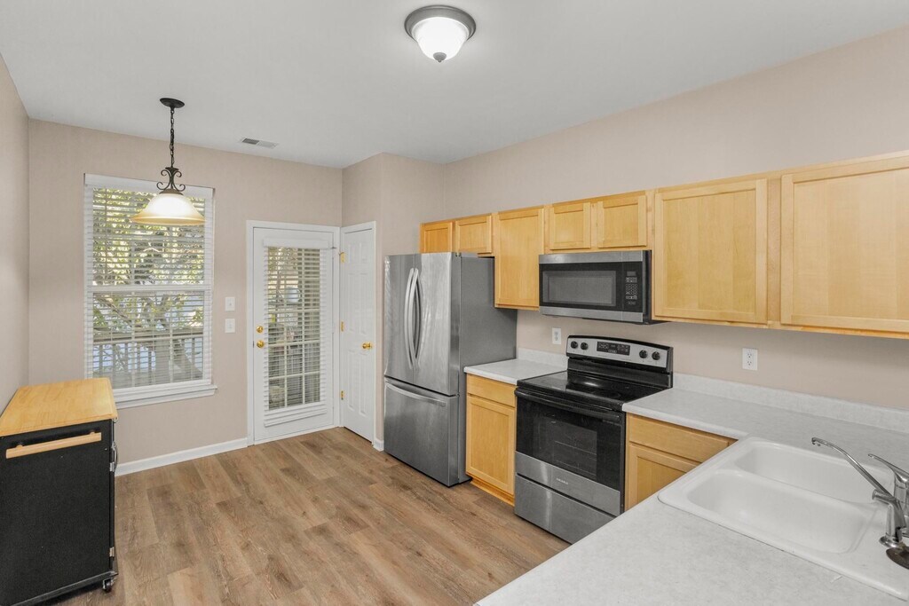 Charming 2-Bedroom, 2.5-Bath Brick Home with Garage & Private Deck – Move-In Ready! Step inside this bright and inviting home featuring soaring ceilings, large windows, and an open-concept layout that’s perfect for both relaxing and entertaining. The spacious living area welcomes you with abundant natural light, a cozy gas fireplace, and gorgeous wood-style flooring throughout the main level along with a half bath. The kitchen features stainless-steel appliances, a breakfast bar, and a dining nook overlooking the backyard. The primary suite on the main floor offers a large bedroom with dual closets and a spa-like en-suite featuring a double vanity, soaking tub, and separate shower. Upstairs, you’ll find two spacious bedrooms with a shared full bath and large closets. Additional highlights include: Private back deck surrounded by mature trees Dedicated laundry closet with washer and dryer included Attached one-car garage with shelving and pegboard organization. Enjoy a quiet community setting with quick access to I40, BNA, and Percy Priest Lake. Professionally cleaned and move-in ready — this home has it all! Pets not allowed.Private Remarks: Home is vacant and move-in ready. Set up showing through Realtracs. Call or text Selena for lockbox code. .