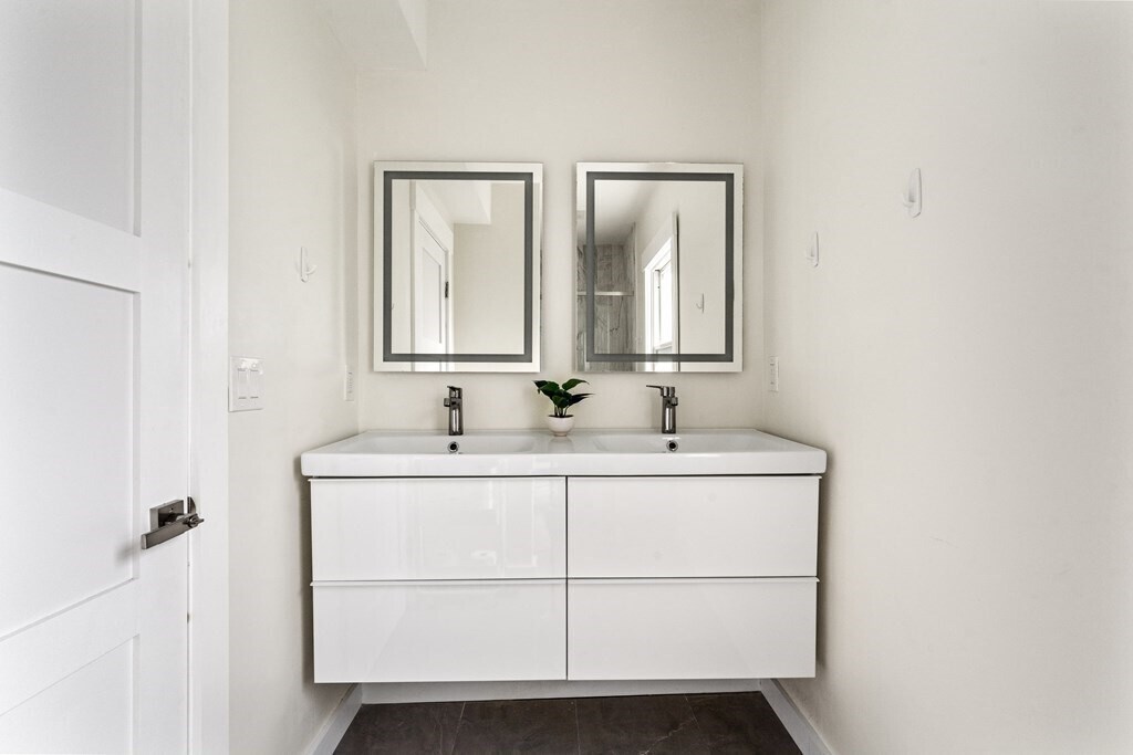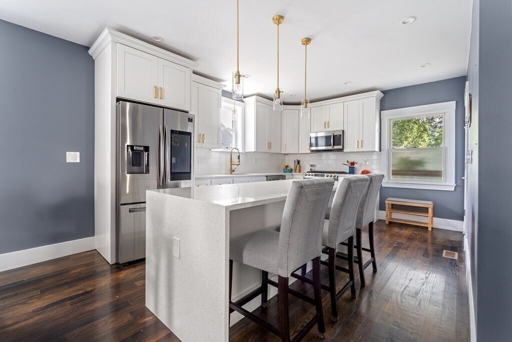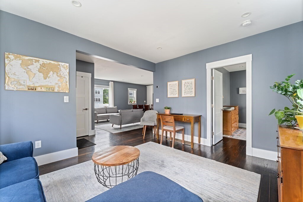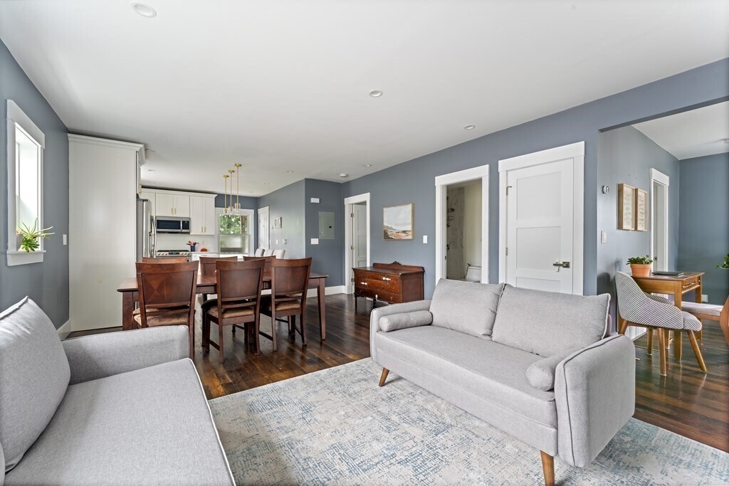 Spacious 2020-renovated 2-bed,2-bath condo with parking,near Roslindale Village. An expansive open layout offers flexibility for a living & dining area,plus a generous family room/den. The sleek kitchen features smart appliances and a three-seat waterfall island with a wine fridge. A large picture window lights up the living room,while a bay window anchors the spacious den. The primary bedroom suite includes a bathroom with floating double vanity and shower with rainfall and jet system. Off the den,the second bedroom offers a wide closet with custom storage. Central air,in-unit laundry,deep foyer closet. Outside,enjoy a private deck,shared backyard,and an exclusive parking space. Half mile to Roslindale Village farmers market,local shops,and the commuter rail to Back Bay and South Station. Lease runs through May 31,2026. Available now. Good credit & references. No pets,no smoking MLS# 73430382