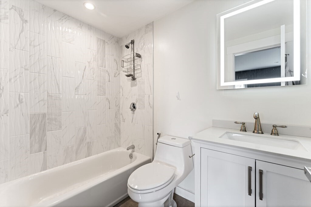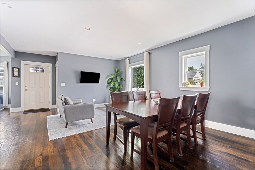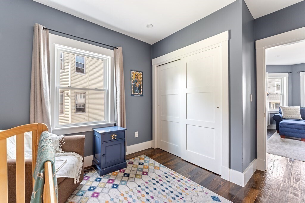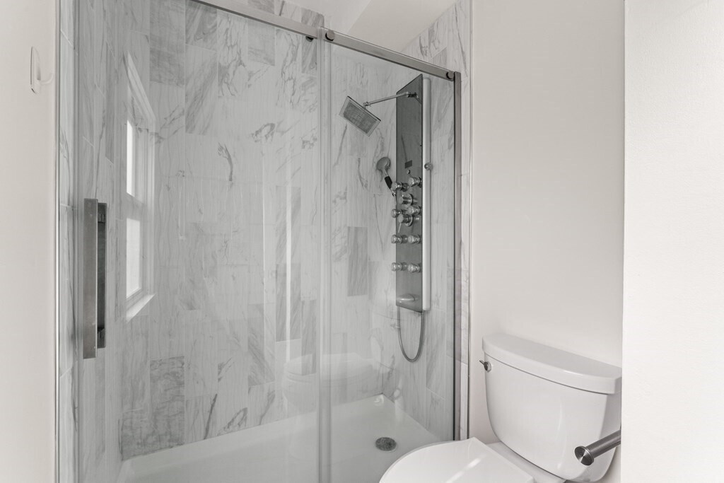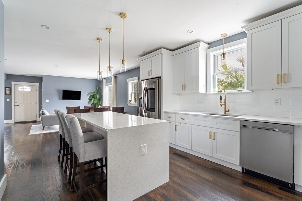 Spacious 2020-renovated 2-bed,2-bath condo with parking,near Roslindale Village. An expansive open layout offers flexibility for a living & dining area,plus a generous family room/den. The sleek kitchen features smart appliances and a three-seat waterfall island with a wine fridge. A large picture window lights up the living room,while a bay window anchors the spacious den. The primary bedroom suite includes a bathroom with floating double vanity and shower with rainfall and jet system. Off the den,the second bedroom offers a wide closet with custom storage. Central air,in-unit laundry,deep foyer closet. Outside,enjoy a private deck,shared backyard,and an exclusive parking space. Half mile to Roslindale Village farmers market,local shops,and the commuter rail to Back Bay and South Station. Lease runs through May 31,2026. Available now. Good credit & references. No pets,no smoking MLS# 73430382