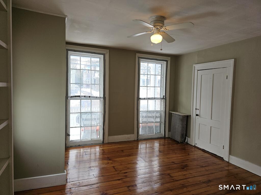 Call for Availability - Live in a piece of New Haven history in this ground-floor 2-bedroom apartment located in a classic 1845 Colonial with just two units, nestled in the sought-after City Point Historic District. This charming residence blends historic character with modern convenience, featuring original wide-plank hardwood floors in the bedrooms and living room and floor-to-ceiling windows in the primary bedroom. The oversized living room offers views of a marina and New Haven Harbor, creating a bright and inviting space to relax or entertain. The updated kitchen leads to a common area with shared washer/dryer as well as a side door opening to a small yard-perfectly positioned for your grill and outdoor enjoyment. One off-street parking space is steps away. Enjoy easy access to everything City Point has to offer-walk to the neighborhood restaurants Shell & Bones Oyster Bar and Grill and Little Lotus. CT Transit buses and the Yale University Shuttle stop nearby. Bike lanes make sustainable commuting simple. Just one mile to IKEA, an essential destination for apartment dwellers! Historic charm, harbor views, and unbeatable convenience-all in one special offering. MLS# 24154433