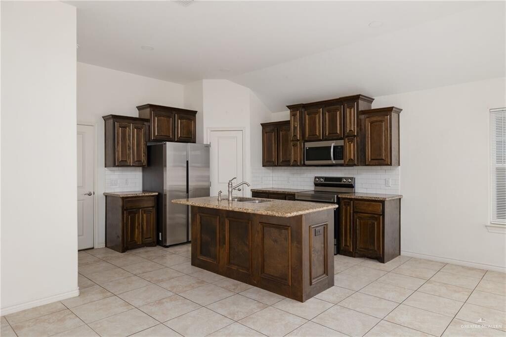 Welcome to Las Arboledas de Hidalgo! This beautiful 4-bedroom,2-bath home offers an open-concept layout with tile floors throughout and plenty of natural light. The kitchen features granite countertops,custom wood cabinetry,stainless steel appliances,and a center island that opens to the spacious living and dining areas—perfect for entertaining. The primary suite includes a large walk-in closet and a double-sink vanity. Enjoy a private fenced backyard,two-car garage,and a convenient location near schools,parks,and shopping. Built in 2022 and move-in ready,this home combines comfort,quality,and modern finishes within Valley View ISD.