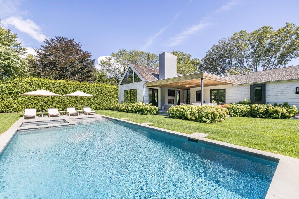 Rental Reg#: 24-129 Expires 2/6/26. Cool and stylish dramatic contemporary with beautifully gated entry. A new construction that has been recently decorated by top designer. Beautiful primary suite plus two additional ensuite bedrooms. Dramatic great room with fireplace, gourmet kitchen and private office. Finished lower level with full-equipped gym, large entertaining room with fireplace, ping pong table and large television. The 450 square foot covered porch accessible from every room in the home features a gas fireplace, skylight and overlooks the privately landscaped yard. There is also an 18' x 38' Gunite pool with integrated spa and outdoor shower. Property is totally fenced. A large, 2 car detached garage completes the package. This is East Hampton Village living accessibility at its very best! Exclusively ours. [[Rental Registration # 24-129]] EH RR #: 24-129 Rental Terms: July: $125,000 August - Labor Day: $125,000