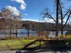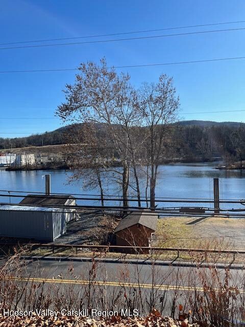 Perched high above the Rondout Creek with commanding waterfront views,this fully renovated home beautifully blends historic charm with modern comfort. Every inch of this residence has been thoughtfully reimagined,honoring the home's origins dating back to the flourishing days of the Rondout while delivering a fresh,contemporary living experience. The main level features a bright,open-concept kitchen and living area,anchored by a spacious island perfect for casual dining or entertaining. Enjoy brand-new appliances,custom cabinetry,new windows,and all-new finishes throughout. Large sliding glass doors lead to a covered patio overlooking the waterfront,extending your living space and offering a serene place to relax. Upstairs,the expansive primary bedroom captures the same stunning water views through sliding glass doors that open onto a private deck. A comfortable second bedroom works beautifully as a guest room,office,or creative studio. The newly finished bathroom includes a glass-and-tile shower with a rainfall showerhead,and the convenience of an in-unit washer and dryer. Efficient split-unit heat pumps provide both heating and cooling for year-round comfort. Outside,the property offers a raised backyard patio—perfect for outdoor dining or lounging—and a large storage shed for bikes,gear,or seasonal items. A rare rental opportunity with incredible views and brand-new everything—ready to welcome its first resident.