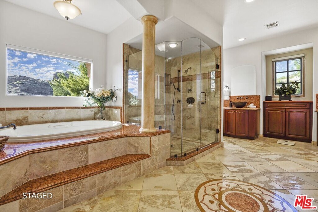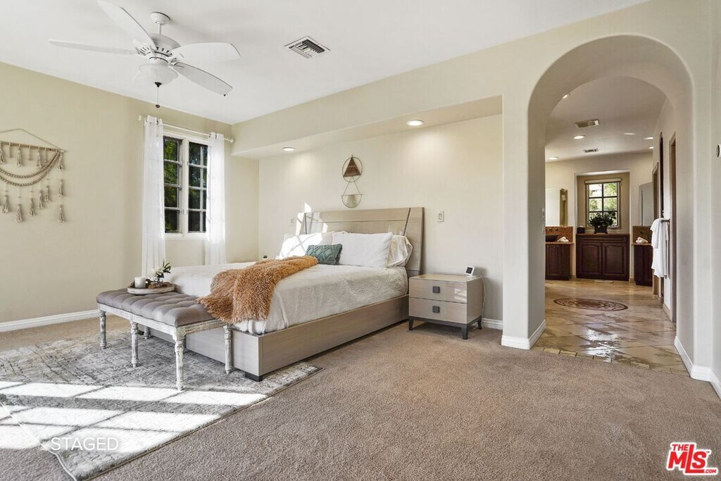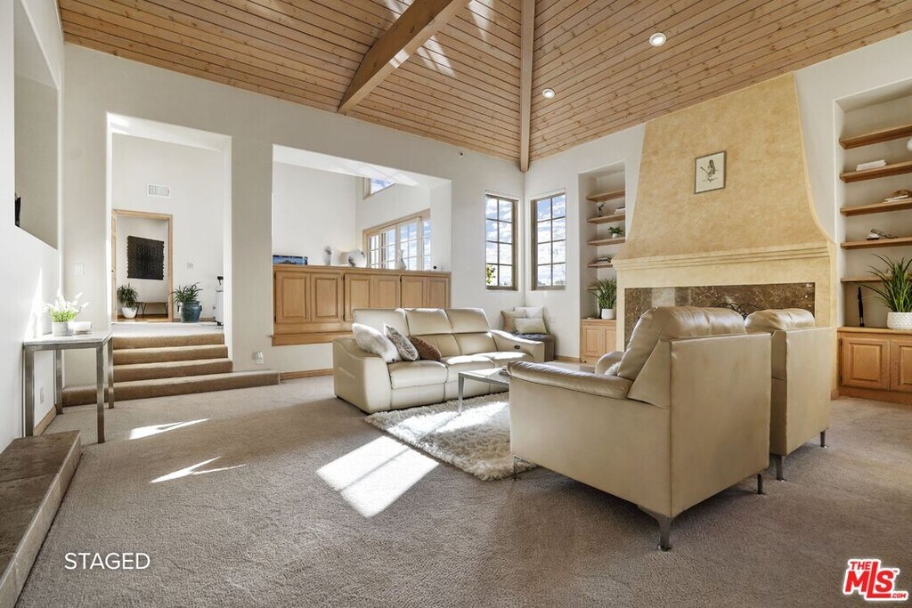 Located in the prestigious guard-gated community of Bell Canyon sits this one-of-a-kind spectacular view estate! Follow the long private driveway up to experience the home's true sense of privacy and tranquility. This remarkable residence sets itself apart with its open floor plan, soaring ceilings, and light-filled interior. Through the double-door entryway, you're welcomed into an expansive living room featuring a fireplace, wet bar, and custom wood-beamed ceilings. The adjacent family room showcases floor-to-ceiling walls of glass overlooking the lush park-like grounds, mountain views, and the sparkling pool and spa. The theme is simple yet sophisticated, with abundant natural light complemented by the warmth of wood and recently added engineered flooring throughout the main living areas and bedrooms. Enjoy the chef's kitchen with granite countertops, a center island, built-in refrigerator, pantry closet, and a separate breakfast nook. The formal dining room is perfect for entertaining large gatherings or hosting intimate dinners. One wing offers a generous primary retreat with a fireplace, an incredible spa-like bathroom, and an extra-large walk-in closet. Just off the primary suite is a great office area with custom built-ins. The second wing features three spacious bedrooms and two beautifully appointed baths.The outdoor space is a true entertainer's delight, with manicured grounds, multiple patios, and verandas all designed to take in the breathtaking views. Bell Canyon offers a lifestyle like no other, including a community park, fitness center, tennis courts, equestrian center, hiking and riding trails, and the highly sought-after Las Virgenes schools. This one-of-a-kind estate has it all. Schedule your private showing today! MLS# 25611209