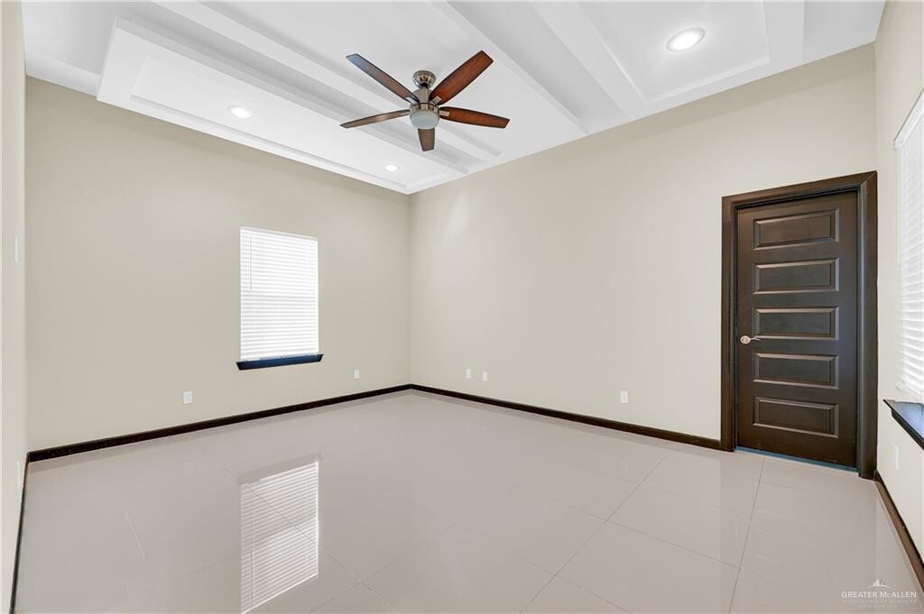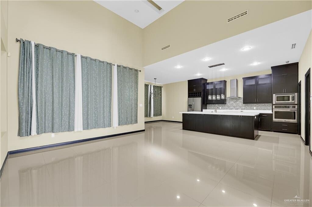 Stunning 3-bedroom,3.5-bath home in La Floresta subdivision,McAllen. This beautifully designed residence features elegant porcelain tile at the entry,an open concept living and dining area with soaring 16-foot ceilings. The kitchen is striking with quartz countertops,modern cabinetry,and a stylish backsplash. Large picture windows fill the living and dining spaces with natural light and offer views of the backyard. Decorative ceilings enhance every room,while the bathrooms showcase elegant tile work and rimless glass shower doors. Additional features include a glass front garage door,security and sprinkler systems,a nice size backyard with fruit trees and patio pergola. Call today to schedule your appointment!
