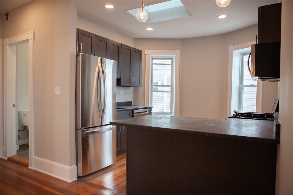PENTHOUSE UNIT! Beautiful Jones Hill 2 BR 1 bath condo quality unit. Hardwood floors throughout,stainless kitchen with custom marbled leather granite counters. Radiant heated bathroom flooring for those chilly mornings! Front AND rear porches that both have stunning views. Recessed LED lighting and Vermont Castings gas stove. Basement storage available. Walking distance to local restaurants like Harp & Bard,DBar,and many others. Savin Hill T is a quick 15 minute walk. Buses 15 and #17 are 50 yards down the hill. Wifi and water is included in monthly rent. MLS# 73398579