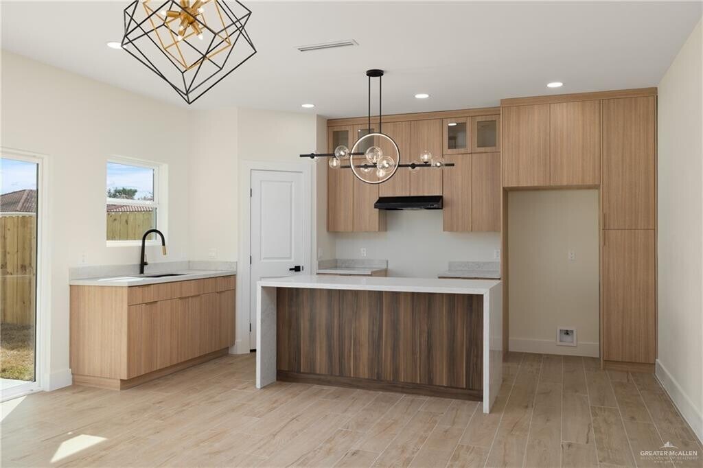 Welcome to this stunning two-story Townhouse in the heart of McAllen,TX! Designed with modern elegance,this home offers a sleek aesthetic and top-tier finishes throughout. Step inside to an open and inviting living space,complemented by elegant light fixtures and custom cabinetry. The kitchen features beautiful quartz countertops,a stylish backsplash,and ample storage. A conveniently located half bath on the first floor ensures ease for guests. A sliding glass door leads to the covered back patio perfect for entertaining family and friends. Upstairs,all three bedrooms provide comfort and convenience. The master suite boasting a private balcony with a glass sliding door,a vanity sink,separate shower,and a spacious walk-in closet. The additional two bedrooms also include walk-in closets.