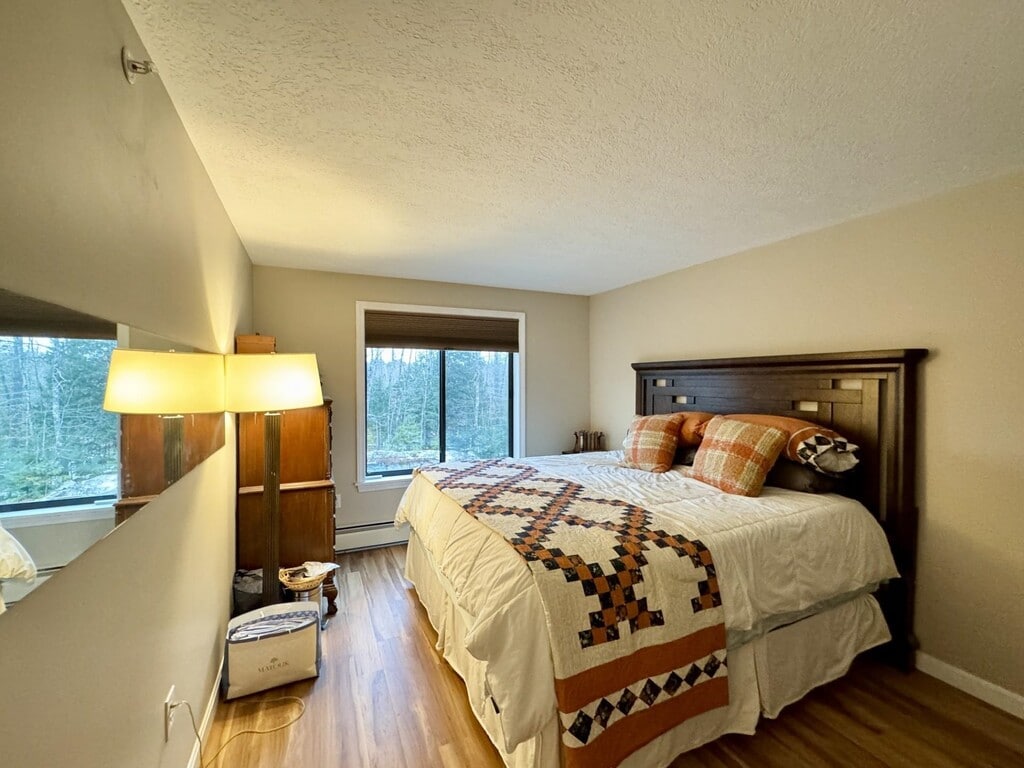 Stunning 3rd floor end unit at Saco Woods condominiums. This corner unit in building 4, which is at the far end of the development, farthest from the main road. Its lovely private balcony allows you to enjoy the fresh air while looking over the sunny backyard facing the backyard. Two bedrooms and one full bathroom, this unfurnished space was upgraded with tile and luxury vinyl plank flooring, granite counters and newer stainless appliances. Appliances also include an electric fireplace in the living room and an in-unit, stack washer and dryer. Heated by forced hot water, and a wall A/C in primary bedroom. These condos are known for their efficiency and are a great alternative to purchasing. Carport onsite along with recreation trails, PO boxes and community land in a convenient location with easy access to Conway, North Conway and Fryeburg Maine. NO PETS and NO SMOKERS. Credit check and Tenant references to be approved by owner. MLS# 5081158