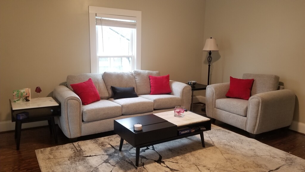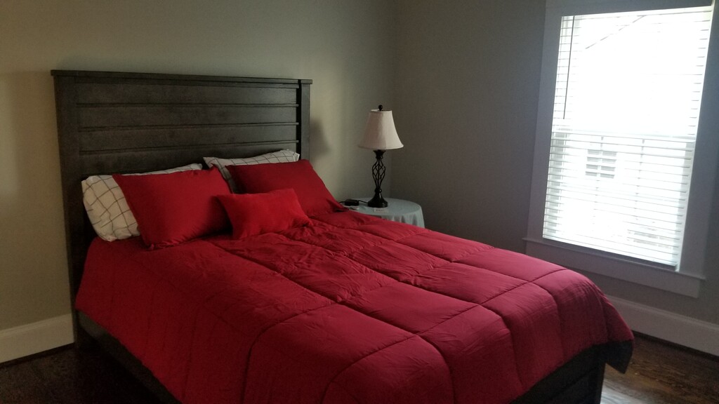 Welcome to Penne Place, a fully remodeled and FULLY FURNISHED 2 bedroom, 2 bathroom home, located within walking distance of the Village of West Greenville. Flexible lease terms, as short a 1 month to 12+ months. Penne Place is only 2 miles from the heart of Greenville's downtown as well as Unity Park. Both bedrooms have queen beds and there is a pull-out queen sofa in the living room for weekend guests. The kitchen has all you need to make a full meal and there is an eat-in dining table that can accommodate up to 6 people. Enjoy the spacious back yard, grilling and eating out on the back deck, or head out front and relax on the front porch. The living room has a smart TV. The fireplace in the living room is ornamental only, please do not use. The home also has a washer and dryer. Utilities are included for furnished rentals, including internet. There are driveways on both sides of the home, for parking up to 3 cars, including 1 car inside the gate. Please note that the garage in the backyard is not available for use by renters. Pets will be considered with an additional $250/pet one time fee.