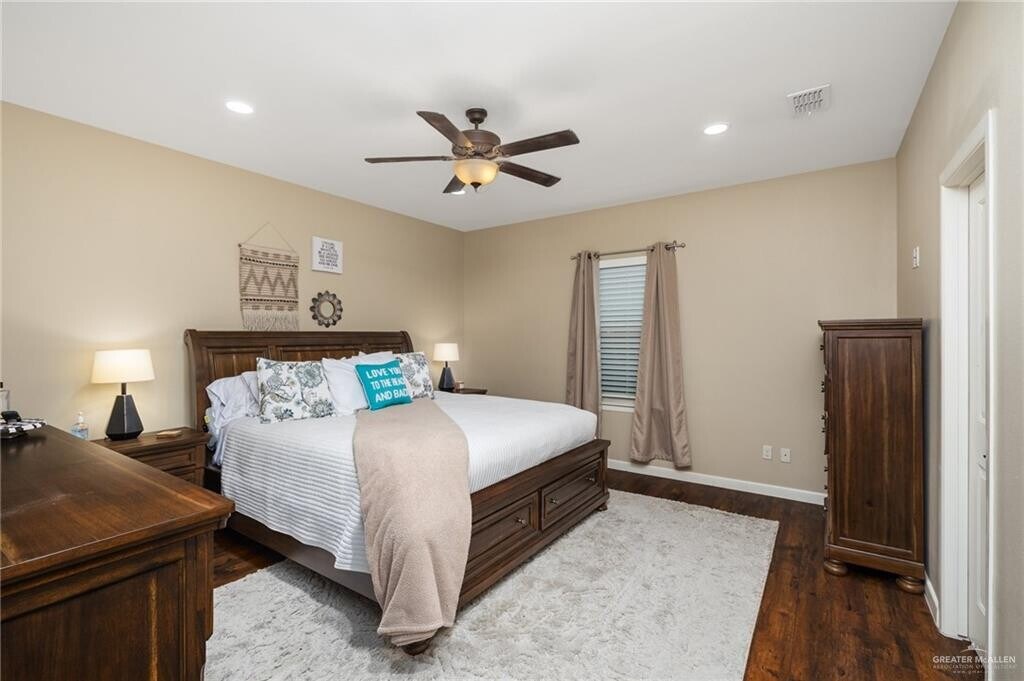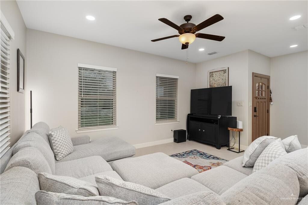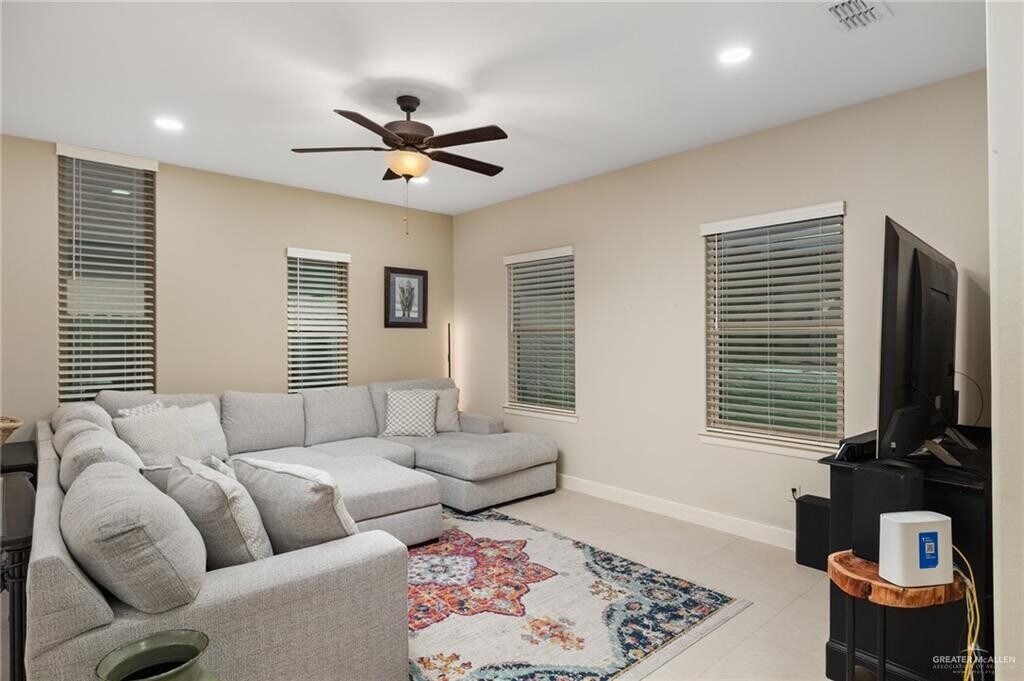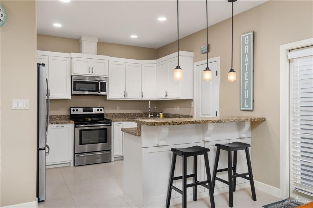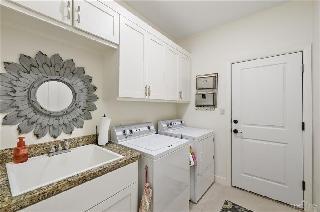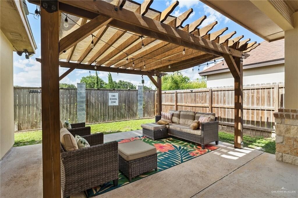Nestled in a highly sought-after area bordering Mission and McAllen,this beautiful home offers refined living within a gated community and is zoned to the renowned Sharyland ISD. Step inside to discover a thoughtfully designed open-concept layout,where the kitchen-featuring a spacious walk-in pantry-is ideally situated at the rear of the home,offering seamless access to the backyard for effortless entertaining. The main bedroom and two junior suits each boast stylish laminated flooring and private en-suite bathrooms complete with granite countertops and elegant showers. Outdoors,enjoy serene evenings under a gazebo,perfect for BBQs and gatherings with friends. Home is fully fenced with full sprinkler system on all four sides. Enjoy access to a private community pool for your comfort and leisure. Schedule your private showing today.