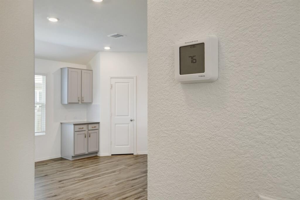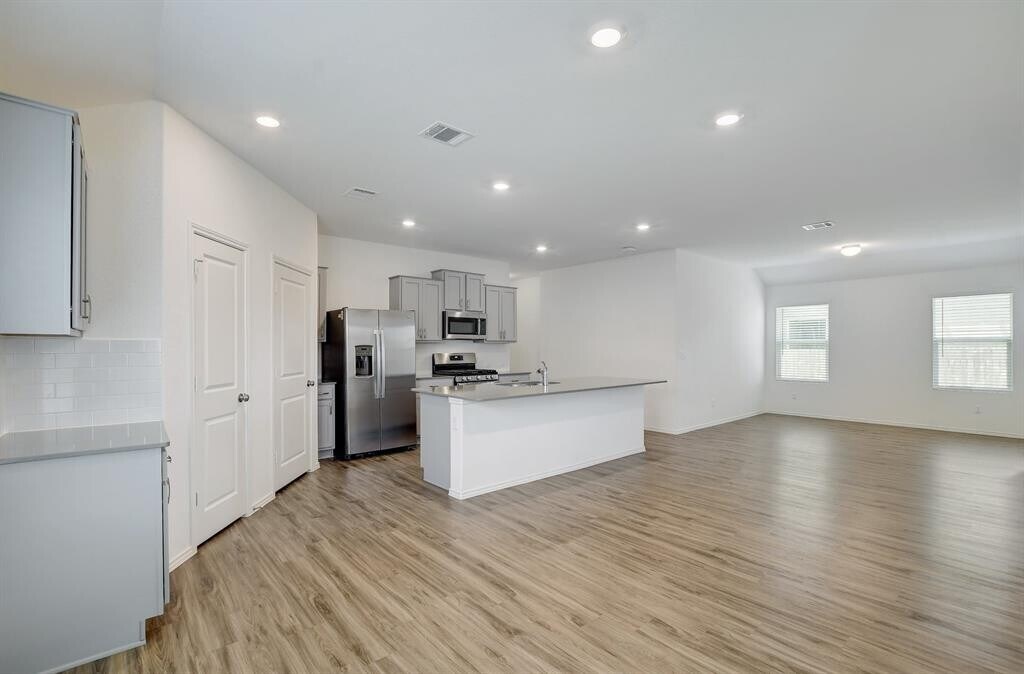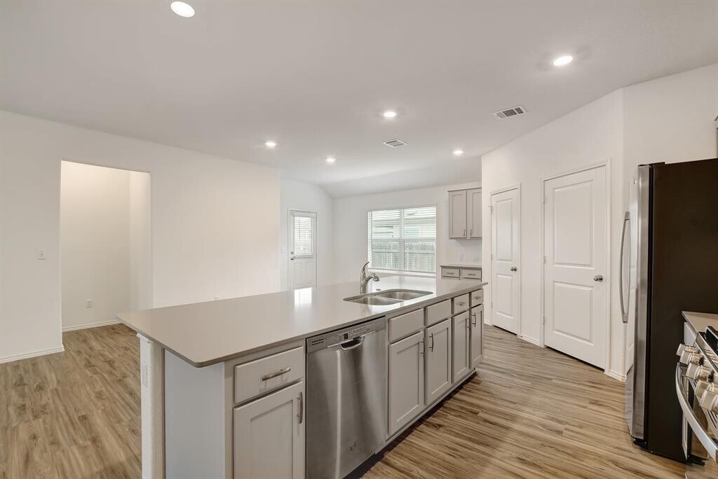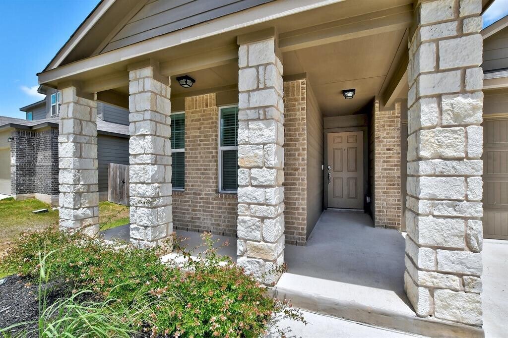 OFFERING 1 MONTH FREE WITH CONTRACT SIGNED BY END OF SEPTEMBER. Part of the newly built Cool Springs community in Kyle, this charming home is just minutes from historic downtown Kyle and Interstate 35 off FM 150, and gives you access to everything you need. With more than 24 acres of greenspace, including three ponds, recreation trails, a future frisbee golf course, and a brand-new amenity center. This beautiful home was built in 2020 with modern finishes like vinyl flooring, stainless steel appliances and quartz countertops, and a spacious open layout floorplan. It also comes with conveniences like a washer and dryer as well as smart devices like a thermostat and doorbell. The primary suite in the back comes with a full bathroom with dual vanity, tub, and shower, and an attached walk-in closet. The secondary bedrooms and bathroom are up front and come with large closets. The house comes with a large two-car garage with an additional 5 feet of storage space. Children will have plenty of space to run around and play outside on the extended driveway and front yard. The covered patio in the back leads to a cute little backyard that strikes just the right balance between space and maintenance. To top it off, the home is just a short walk from the brand new community pool, where you can cool off when it's hot outside!