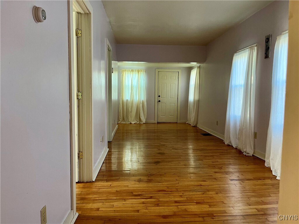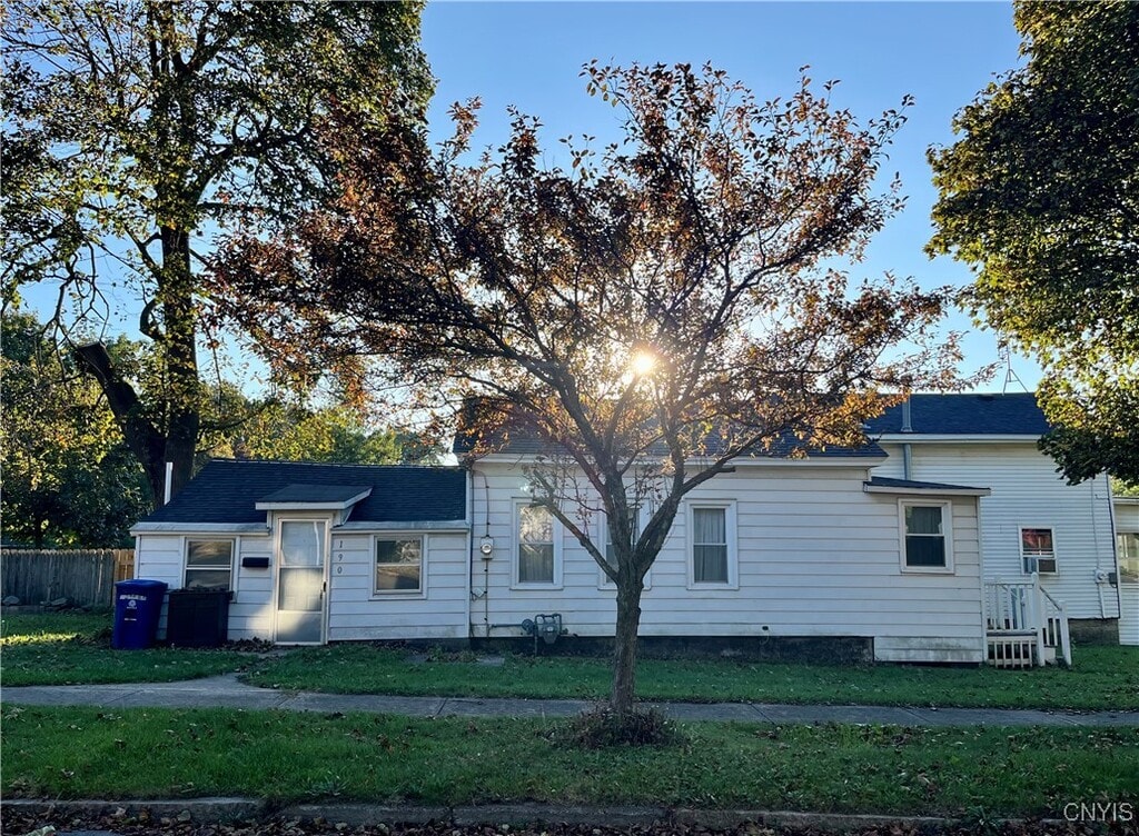 Single family home available for rent in the City of Oswego. This Cottage style home offers convenient one floor living with 2 bedrooms and 1 full bath. Freshly painted with beautiful hardwood flooring. Mud-room entry with built in storage shelving and laundry hook-up. Full basement with some shelving for additional storage needs. Corner lot with spacious yard and wide driveway for off street parking. Fitzhugh Park Elementary School located just across the street. Within a short walk to local diners,grill & pub and convenience stores for everyday needs. $1,300/month rent with water and sewer included,all other utilities,lawn care and snow removal are the responsibility of the tenant.