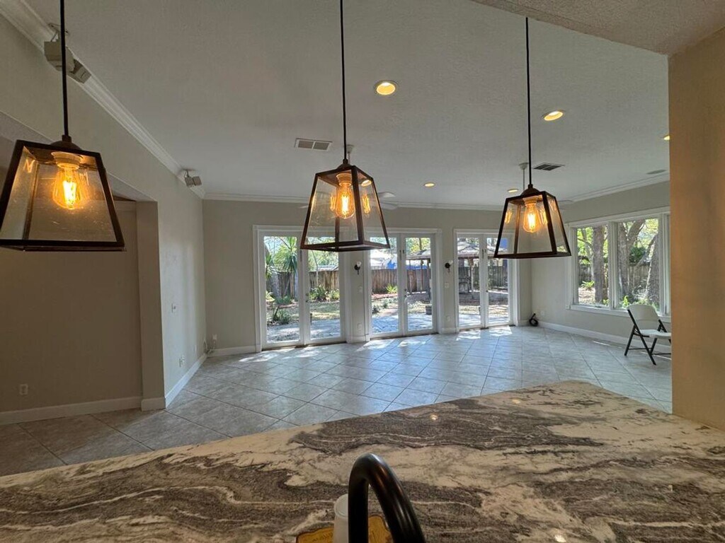 Gorgeous 5 bedroom, 3.5 bathroom pool home in Ormond Beach featuring almost 3000 sq ft of living space with options galore!! This home has two large living rooms, a family room area with a fireplace, an office, and the 5th bedroom would make a great game room or an in-law suite. The kitchen was recently remodeled with gray shaker style cabinets, modern backsplash, granite countertops, stainless steel appliances with a gas range and a large breakfast bar. The kitchen opens to the large living room in the rear of the home with tons of natural sunlight and access to one of the large decks. The primary bedroom is located off the front living room with access to your own private, pergola covered deck, en-suite bathroom with double sinks, large shower and a closet with built ins. You can access the huge screen enclosed pool and outdoor kitchen through the family room area or that 5th bedroom/in-law suite/game room. You will also find two bedrooms and a bathroom off the family room area. The 3rd guest bedroom is located at the front of the home with a jack and jill bathroom connecting it to the 5th bedroom/in-law suite or game room. You will find two separate fenced in areas in this backyard, shed and gazebo with a bar. Don't miss out on this one!! *Pool and lawn care included! *Small dog ok! *Renters Insurance required *Office, *After Hours,
