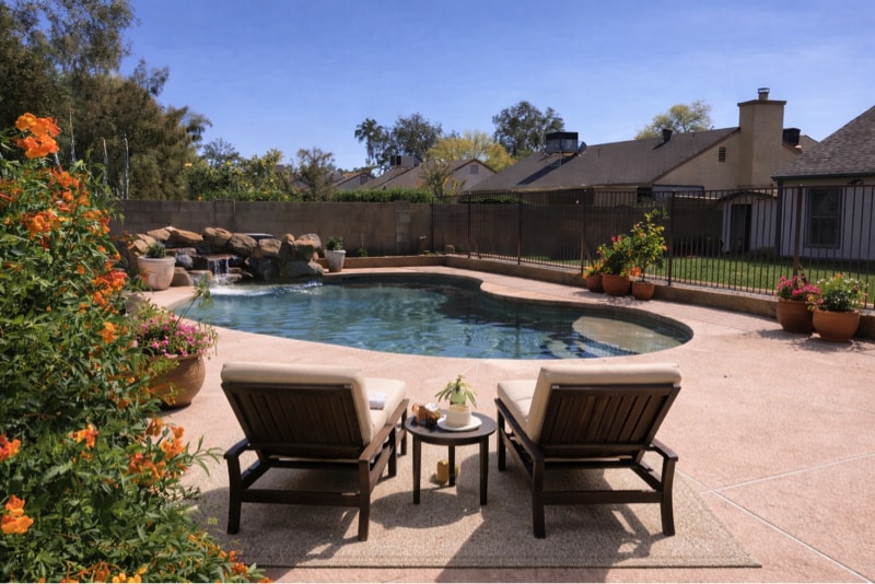 Property Id: 6793 Step into resort-style living at home in this stunning 4-bedroom, 2-bath residence designed for comfort, style, and unforgettable entertaining. From the moment you enter the backyard oasis, you'll feel like you're on vacation, complete with a sparkling pebble-tec pool with waterfall, a large grassy area, and a covered porch perfect for relaxing evenings or hosting friends and family. Inside, nearly 2,000 sq. ft. of beautifully updated living space awaits. Vaulted ceilings create an airy, open feel, while central A/C and ceiling fans keep the home comfortable year-round. The open-concept kitchen is the heart of the home, overlooking a spacious dining area and featuring a charming French bay window. Glass doors seamlessly connect the indoors to the backyard, making entertaining effortless and inviting. Ideally located within walking distance to Chandler Fashion Center and a variety of great restaurants, and just minutes from the I-10, 202, and 101 freeways, this home offers both convenience and lifestyle. Highlights: 4 Bedrooms / 2 Bathrooms Resort-style backyard with pebble pool & waterfall Large grass area + covered porch Nearly 2,000 sq. ft. with vaulted ceilings Updated interior: appliances, paint & flooring Open kitchen with bay window & backyard views Prime Chandler location near shopping and dining Minimum credit score: 700