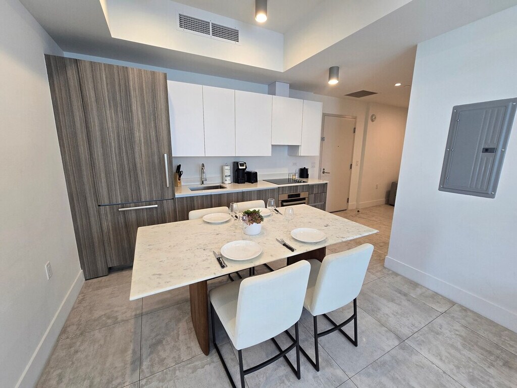 The advertised rate of $4,788/month is the lowest available price, based on a 30 day(s) stay with a move-in date of August 24, 2026. Rates vary depending on the duration of stay, season, and other parameters. For exact pricing and additional pricing components, please visit our website and enter your desired move-in and move-out dates. The rate is applicable when billed upfront; it can be higher if billed in multiple payments. Feel at home in this brand new 1-bedroom and den condo in the heart of Miami’s vibrant Brickell neighborhood. This stylish retreat has everything you need for comfort and convenience, including a fully equipped kitchen with modern appliances, a washer and dryer in unit, a Smart TV with cable, high-speed Wi-Fi, a balcony with seating, and central air conditioning and heating. The apartment also features stylish furnishings and a thoughtful layout. One free on-site parking space is provided. A crib and pack ’n play are available on request. Walk to world-class restaurants, buzzing nightlife, and trendy shops. Brickell City Centre and Mary Brickell Village are just minutes away. Panther Coffee, Dolores But You Can Call Me Lolita, and Crazy About You are within walking distance. Rosa Sky Rooftop is also nearby. Perez Art Museum Miami and La Mar by Gastón Acurio are a short drive away. Guests must be 21 or older to book. No smoking or parties are allowed, and a $250 fee applies for violations. No pets are allowed. Quiet hours are from 10 PM to 8 AM. Please respect check-in and check-out times. Upon arrival at the property, guests must check-in with the Front Desk. The person whose name the reservation is under must always be present during the reservation and needs to provide a valid government ID. Rules and regulations are reviewed and signed by the guest. There is no luggage service, but valet luggage carts can be checked out for use at the front desk with a valid government-issued ID. Fobs, or keycards and keys, will be given at this time to guests. HOA management will collect a copy and archive valid government-issued identification of all guests prior to check-in. Guest leaves Fobs on the unit hanger. Additional cleaning services are available upon request for a fee. Includes a dedicated workspace for remote work. Provided services by the building include 24 hours x 7 days a week front desk, water, cable, Wi-Fi, and check-in and check-out services. [SI]