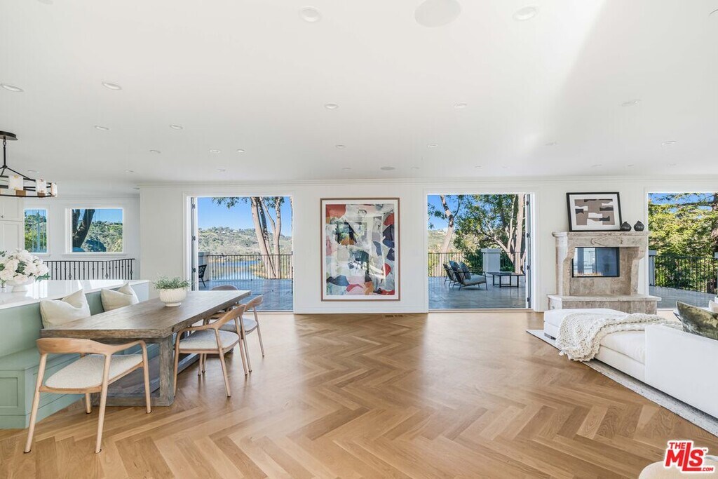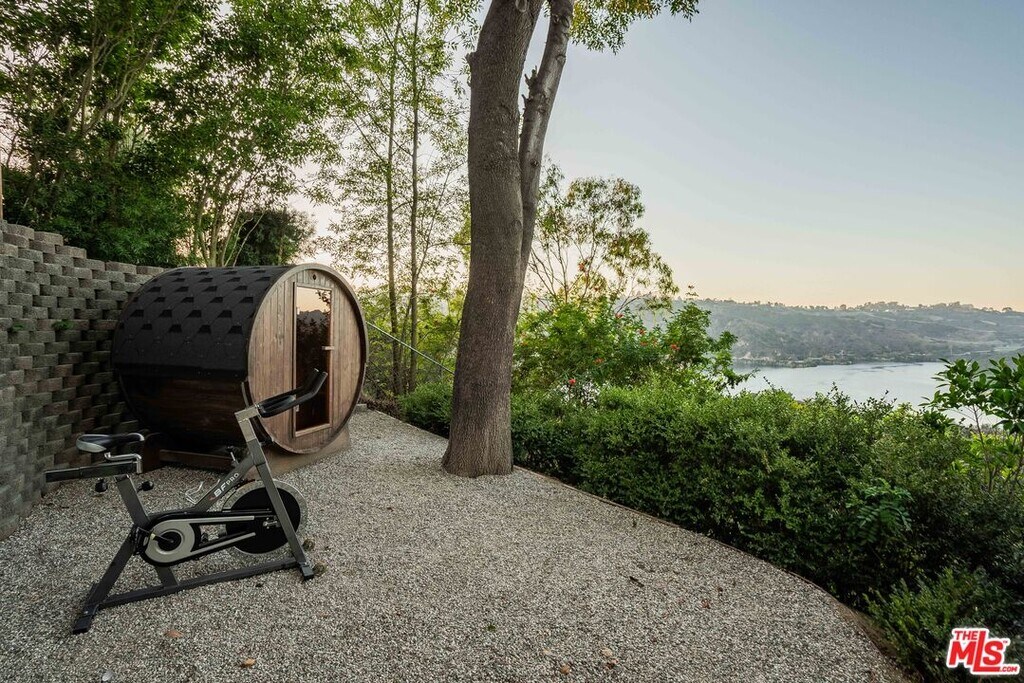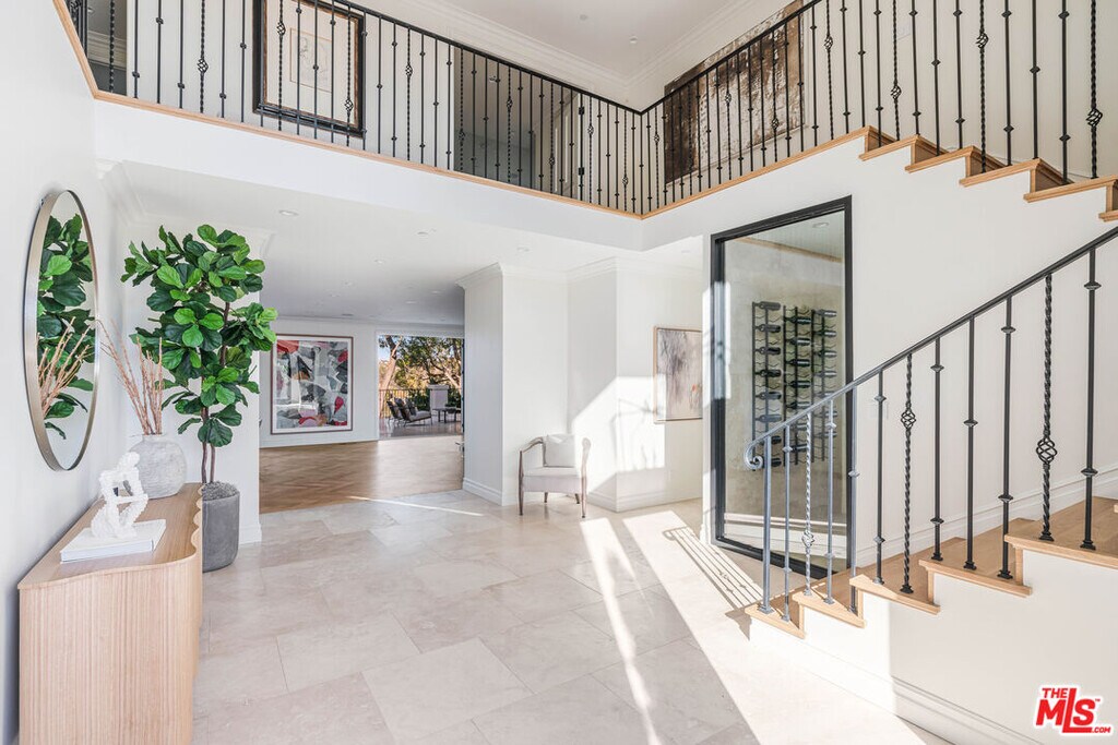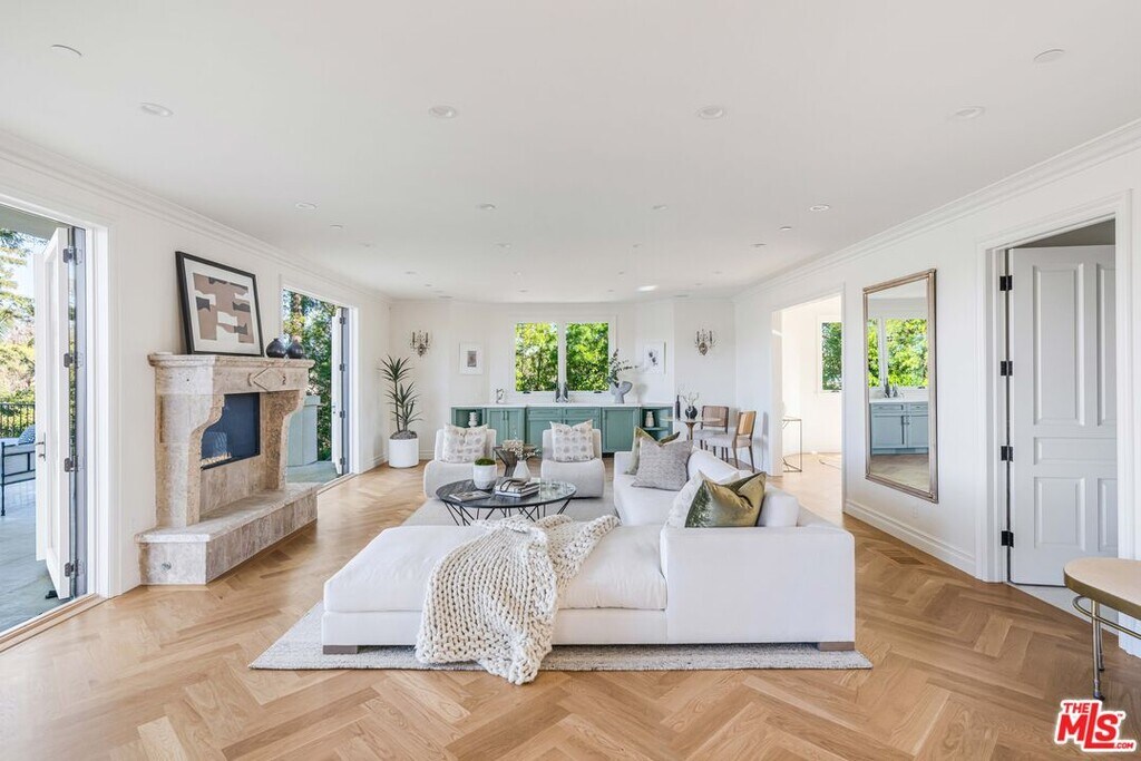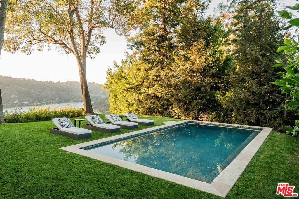 Stunning Contemporary Mediterranean home completely rebuilt and located behind gates on a private hillside in Bel Air. 1 of only 5 properties on Bel Air Road with unobstructed panoramic views of the Stone Canyon Reservoir and rolling hills beyond. Set on nearly half an acre, this home offers 6 bedrooms, 9 baths, a bright open floor plan with a warm minimalist aesthetic. Designed to capture the feeling of a European lakeside villa. A grand two-story entry opens to spacious living areas with White Oak herringbone floors and stunning water views. The gourmet kitchen features Thermador appliances, a La Cornue range, large island with breakfast nook and butler's pantry. Main rooms flow to a resort-style backyard with pool, spa, outdoor kitchen, dining areas and lush landscaping. The primary suite includes a private terrace, lounge, dual spa-like baths and walk-in closets. The lower level offers a wellness retreat with gym, cold plunge, steam shower and outdoor barrel sauna. Additional features include smart home systems, elevator, wine cellar, 100 ft gravel driveway with parking for over 10 cars. A private gated compound offering exceptional design, privacy and breathtaking views. Also available for sale. MLS# 26635299