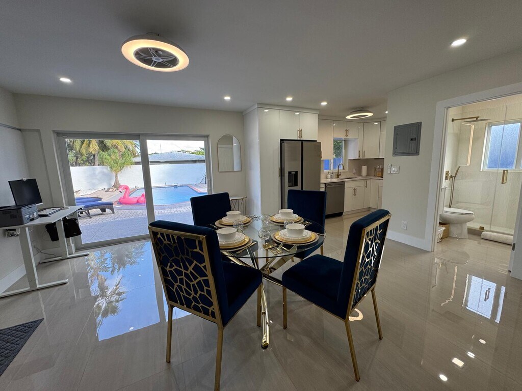 Azure Dreams HouseFirst-class prime Location of Pompano Beach20 Min to Int. Ft.Lauderdale Airport5 Min to the Beach20 Min to Sawgrass Mall and Hard Rock Casino40 Min to Miami (Brickell, Wynwood, South Beach)5 Min Whole Foods /Publix/AldiDesigned for 4 guests (2 Queen Beds)Private Heated saltwater poolOutdoor AreaFree Parking 4 CarsFREE use of beach chairs/cooler/umbrellaFully Equipped KitchenFast Wi-FiQuiet and Safe Neighborhood24/7 Available HostThe spaceAt Azure Dreams House magical energy fills the air and unforgettable memories are created—making you want to come back again and again.You will find it Ideal for families, couples or small groups of friends!Featuring a charming 2 BR, 1 Bath resort style with heated saltwater pool, all in complete privacy surrounded by a tropical garden, located in a beautiful neighborhood full of palm trees and with spectacular gardens around it, quiet and safe.You will notice that Azure Dreams House is designed with guest comfort in mind2 Charming bedroom75 inch Smart TVFast Wi-Fi (300Mbps)New fully equipped kitchenOasis BackyardHeated saltwater Pool Natural backyard area to relax + BBQ areaFree Parking (4 cars)LIVING ROOMThe perfect space to read and watch TV or relax while watching your folks playing in the 4-seater modular couchSmart TV (75-inch)Side table with organic decorative accessories Library with good reading optionsIn this open space we have thought of an area to work in those moments where you have to, a perfect, electric adjustable height desk for your laptop with Monitor, Conference Camera, Keyboard and Mouse to connect one USB-C cable to your laptop and comfortably do your dedicated office chairTHE KITCHEN & DINING ROOM It is fully equipped with everything you need to create a perfect meal at home, you will find all ingredients for your recipes (PUBLIX, ALDI & WHOLE FOODS MARKET) 5 minutes from the house, Otherwise we are in love with family meals therefore keeping majority of ingridients available for you such as Salt (Sea, Pink, etc...)Avocado/Olive Oil, All kinds of pepper and so onCooktopRefrigerator/Freeze DishwasherMicrowaveSinkFabulous coffee & tea station (Complimentary Pods + brown sugar + matcha and regular tea) Hot Water Kettle BlenderToasterTrays Glasses/cups/plates - indoor /outdoorSilverware/Goldenware )Pots, Pans, Trays and moreCooking is not your thing, No problem, in the provided guestbook you will find plenty of World-class restaurants in the area that you can go to or order home delivery.Round dining table cozy space that will be the center of the house with 4 comfortable fabulous designer chairs.