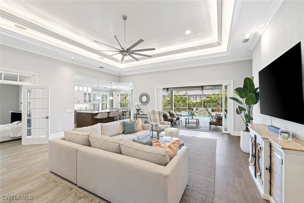 Tastefully Renovated Royal Harbor Home. Walk in through oak front doors into an open floor plan with vaulted ceilings and view to the outdoor living area and pool that overlooks the canal. Enjoy a luminous kitchen including White Glacier countertops,white cabinetry-to ceiling w/glass fronts,gas stove/gas range with hood,microwave all new with the renovation. The kitchen also features a large island 8' x 5'. The Primary suite was also renovated and features white,grey granite,white shaker cabinets,stand alone tub. All bedroom closets have built in closet system. Don't miss this opportunity to live in one of Naples most desirable waterfront communities. Dock use available for boaters. NOT AVAILABLE August 2025.