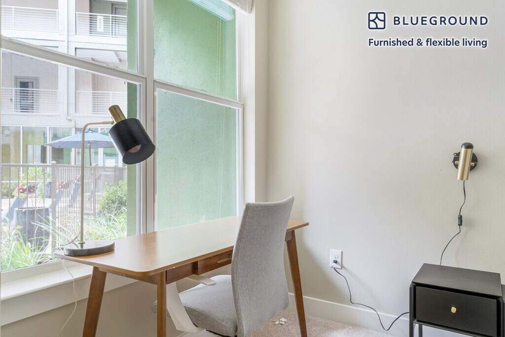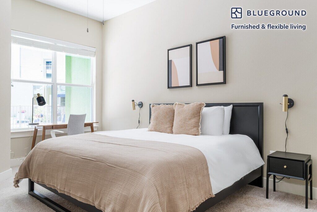 Discover the best of Austin, with this one bedroom apartment in Mueller Town Center District with balcony views over the city. It’ll be easy to simply show up and start living in this fashionably furnished apartment with its fully equipped kitchen, cozy living room, and our dedicated, on-the-ground support. (ID #ATX33) The advertised rate of $1,910/month is the lowest available price, based on a 11 month(s) and 29 day(s) stay with a move-in date of January 6, 2026. Rates vary depending on the duration of stay, season, and other parameters. For exact pricing and additional pricing components, please visit our website and enter your desired move-in and move-out dates. The rate is applicable when billed upfront; it can be higher if billed in multiple payments. Brokers are welcome to reach out. Were you looking for an unfurnished lease? Try Blueground instead and upgrade from unfurnished to furnished living: - Furnished at rates comparable to unfurnished - No setup or furniture costs - save thousands - Move-in ready - save time, just bring your suitcase Designed with you in mind Thoughtfully designed with bespoke finishes, modern furnishings, and a fully equipped kitchen, you’ll enjoy that “I’m home” feeling with this Blueground apartment. Whether you’re lounging in your cozy living room streaming the latest and greatest entertainment on the smart TV or premium wireless speaker, or getting some well-earned rest on the superior quality mattress with luxury linens, you’ll fall in love with everything this Mueller Town Center District apartment has to offer. This apartment also offers in-apartment laundry. Sleeping arrangements King Bed, 70.8in/180cm Amenities Building amenities unique to this one bedroom apartment include an on-site: - Dryer - Elevator - Swimming pool - Washing machine - Lounge - Parking - Pets allowed Arrival and ongoing support The entire apartment is yours to enjoy! Throughout your stay, you’ll have access to our Client Experience team through the Blueground App. You can schedule additional cleanings, submit maintenance requests, and view our neighborhood recommendations with just a few taps. We’ll share all details upon confirmation of your stay. Other things to note Building amenities may have an extra cost. This Blueground apartment has flexible lease options, allowing you to book it for one month, a year, or more. Pets are welcome, though weight limits and breed restrictions apply and may incur fees. Parking is offered based on availability and is subject to a fee. We take great pride in ensuring every photo displayed is shot in our own units with our actual furnishings. That said, we regularly refresh our decor and furniture arrangement, which may differ from what’s pictured. Also note - This apartment is accessible for people with physical disabilities [SI]