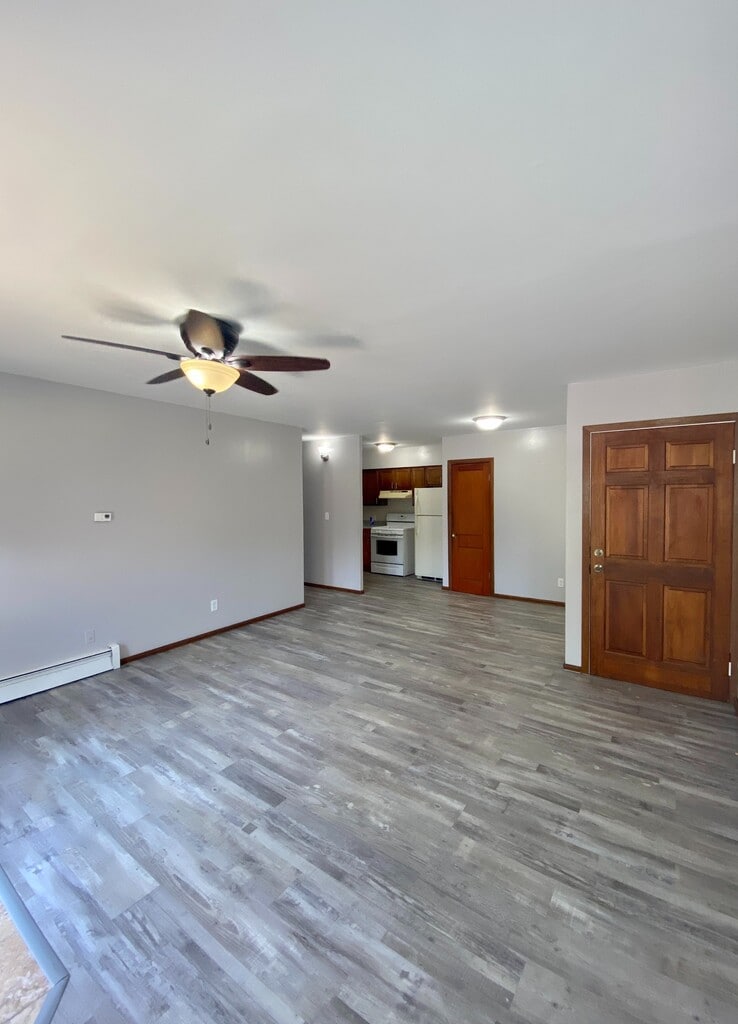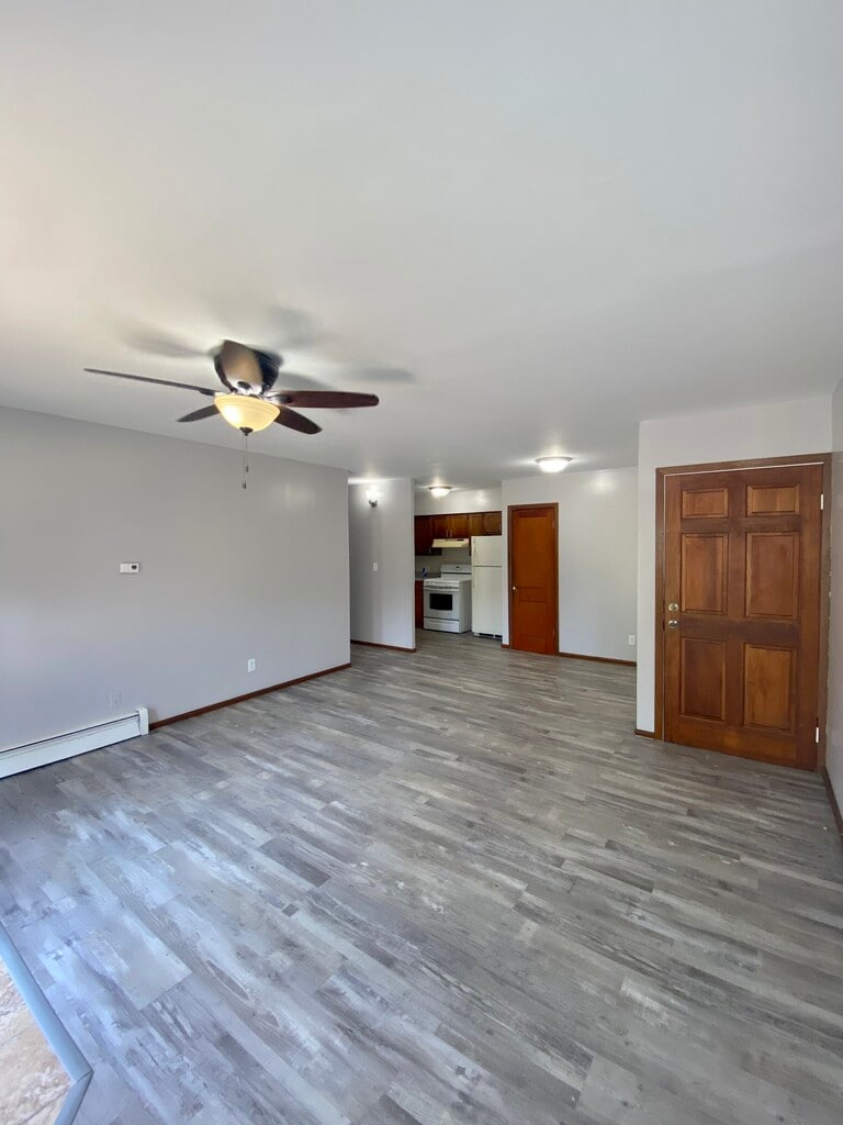 Heat, Water, & Garbage included!!! 2BR/1BA apartment available! This 2 bedroom apartment offers a spacious living space with a living room, dining area, kitchen and 2 bedrooms. The main bedroom in this unit is very spacious with a closet. The second bedroom also offers a closet and ceiling fan. There is also a small pantry right off of the kitchen!