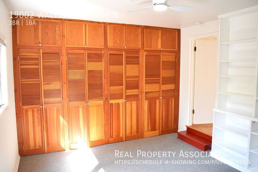 Charming rambler in quiet Shoreline neighborhood with EZ access to I-5 or 99. This single family one story home offers 3 bedrooms & 1 bath. Third bedroom would also be great for office or hobby room with tons of custom floor to ceiling storage on 2 walls and south facing wondow for great light. Original hard wood floors throughout & large windows in every room let in lots of light. Gas fireplace in Living room. Galley style kitchen offers great storage, garden window, 6 burner gas stove and many custom features. Laundry/utility room off of kitchen also offers floor to ceiling cabinets for additional storage. Large back yard with patio, storage shed, room for gardening, including raised beds for vegetables, and room for RV parking. No Pets please. 1st, Last, & Security Deposit required *Scheduled showings are in person unless otherwise requested. - To Schedule a Tour Link: - Application fee $45 per adult. - See more listings at - Application Criteria: • Required: 700 credit Score or better, 3-5 years rental history, 2.5 to 3 times the monthly rent in income, min.1 year work history, Review of Background. Owner will not allow co-signers; applicants must qualify on their own. ***Please visit our company site at for accurate information regarding unit pricing and availability***