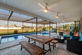 Gather your loved ones and feel at home at The Relaxing Escape. This amenity-filled home boasts three bedrooms, two bathrooms, and room for up to 8 guests, there's ample space for your entire family to relax, unwind, and reconnect. This home features a fully stocked kitchen, three flat-screen smart TVs, a washer and dryer, and fast Wi-Fi. The kitchen is equipped with everything necessary to craft delightful meals, including a coffee machine. Enjoy the convenience of beach gear including chairs, towels and an umbrella, as well as awesome board games for the kids. For the little ones, a pack ‘n’ play, high chair, and kids’ dinnerware are provided. Step outside to enjoy the expansive swimming pool, a BBQ grill, and a cornhole game. The covered back porch is a great place to escape the group and settle in with a good book or daydream as the world goes by. Pool heat is available for $35 per night. This home is situated just a short distance from IMG Academy and the breathtaking beaches of Anna Maria Island. It is 4 miles to IMG Academy, 6 miles to Manatee Public Beach and Bradenton Beach, 8 miles to Anna Maria Island, 12 miles to Sarasota Bradenton International Airport, 19 miles to The Premier Sports Campus, and 21 miles to Bradenton Motorsports Park. Absolutely no prom, graduation, or other large parties or events are permitted. The maximum number of house guests must equal the maximum number of sleeping accommodations our home allows for 8 guests. A noise detector has been installed in the house to notify you if the sound has reached a level that could disturb the neighbors. City of Bradenton quiet hours are 10PM-7AM, during those hours noise must be kept below 65 db. There is a Ring camera at the front door. Please be respectful of the neighbors. [SI]