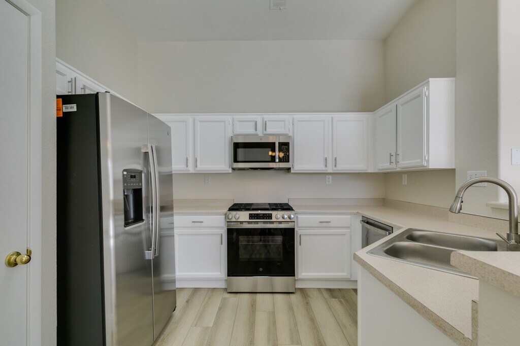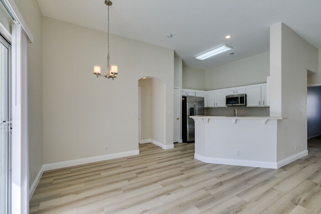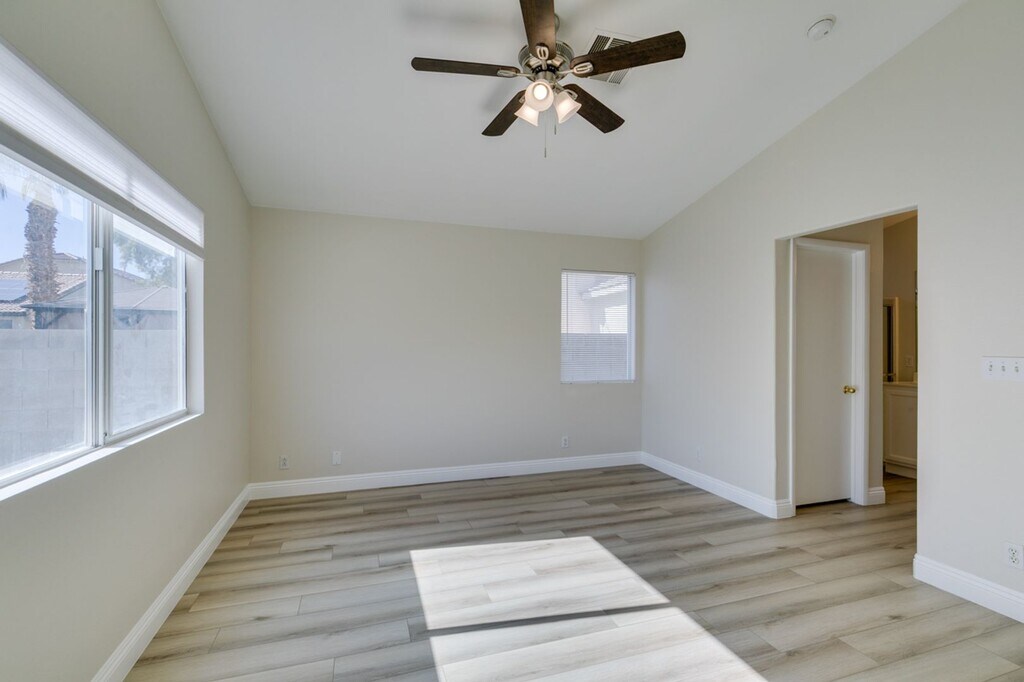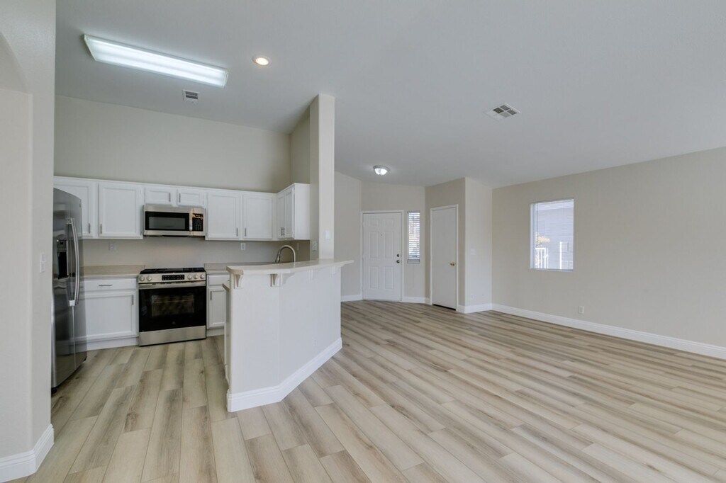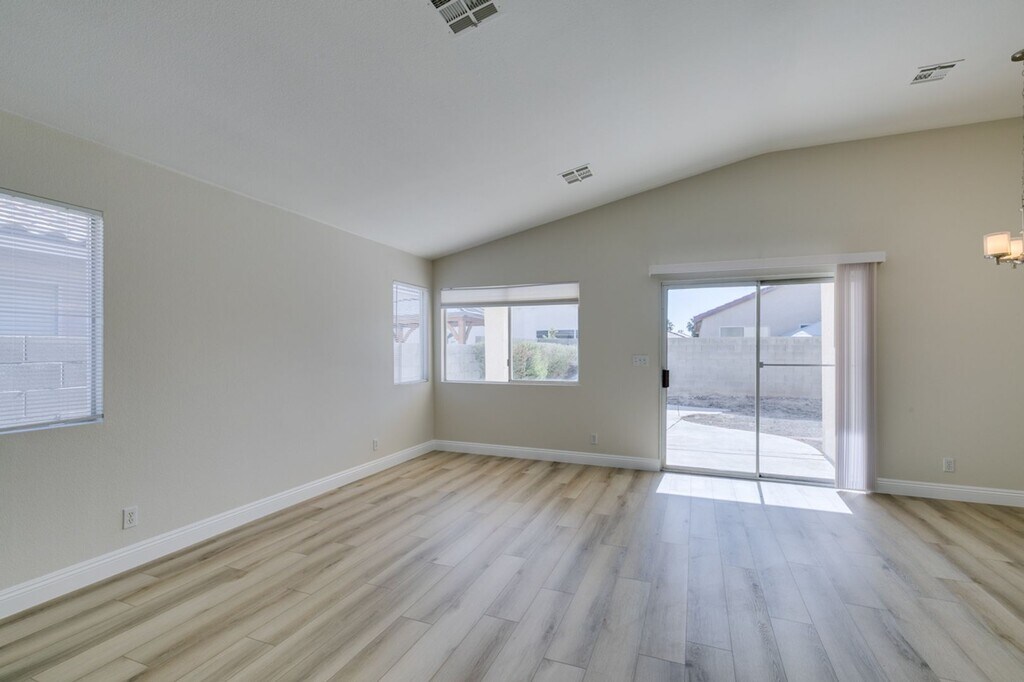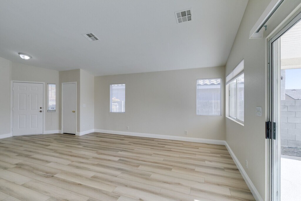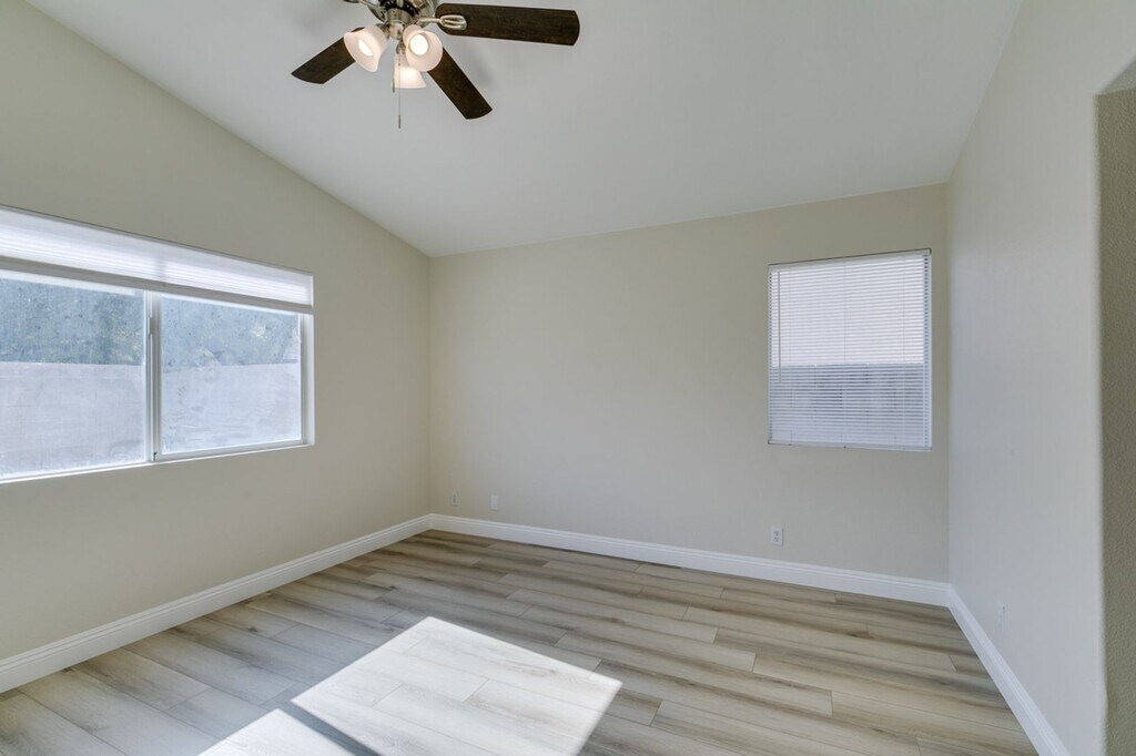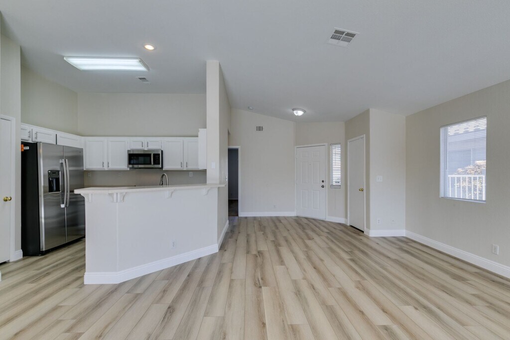 Priced to rent and move-in ready, this single-story home offers comfort, space, and easy living at a great value. The open floor plan with vaulted ceilings creates a bright, spacious feel, while wood-look flooring throughout the main areas keeps maintenance simple and stress-free. Bedrooms feature plush carpet and ceiling fans for everyday comfort. The kitchen opens to the living and dining space, making it practical for daily routines, working from home, or entertaining without wasted space. The primary bedroom includes a private en-suite bath with dual sinks, and the secondary bedrooms are well-sized and versatile. Enjoy a private backyard with a covered patio—perfect for relaxing without high upkeep. Attached two-car garage adds secure parking and extra storage. Conveniently located near shopping, dining, and major roadways. Clean, functional, and competitively priced—homes like this don’t last long. **Application Requirements*** -Proof of income - Approximately 3x the rent. -Rental History will be checked going back 3 years. -Credit Check will be completed. Evictions are an automatic denial. -$85 Non-Refundable Application fee per adult. All adults must apply. - 1 Year Lease ***Move-In Cost*** -$1975 Monthly Periodic Rent -$1900 Refundable Security Deposit -$350 Refundable Cleaning Deposit -$100 Refundable Key Deposit -$100 Admin Fee