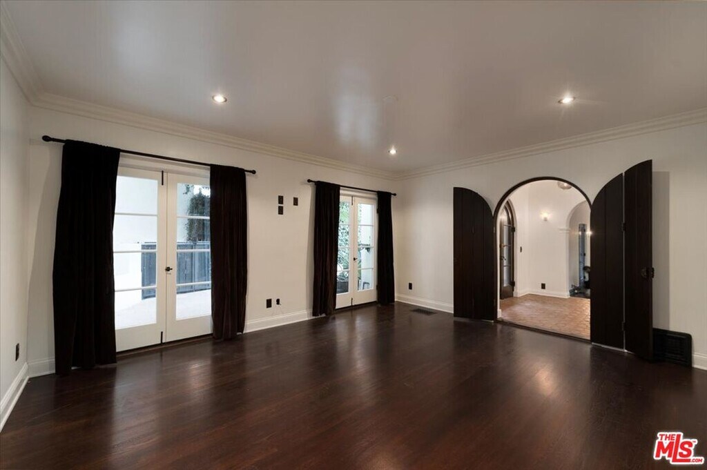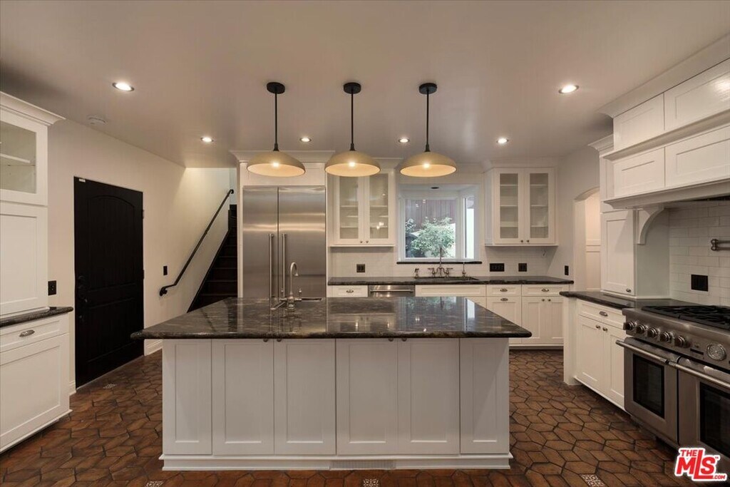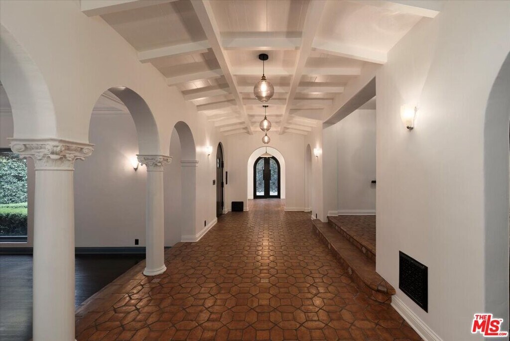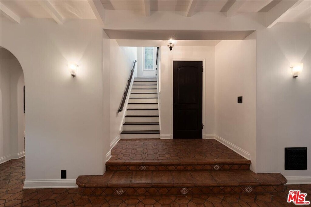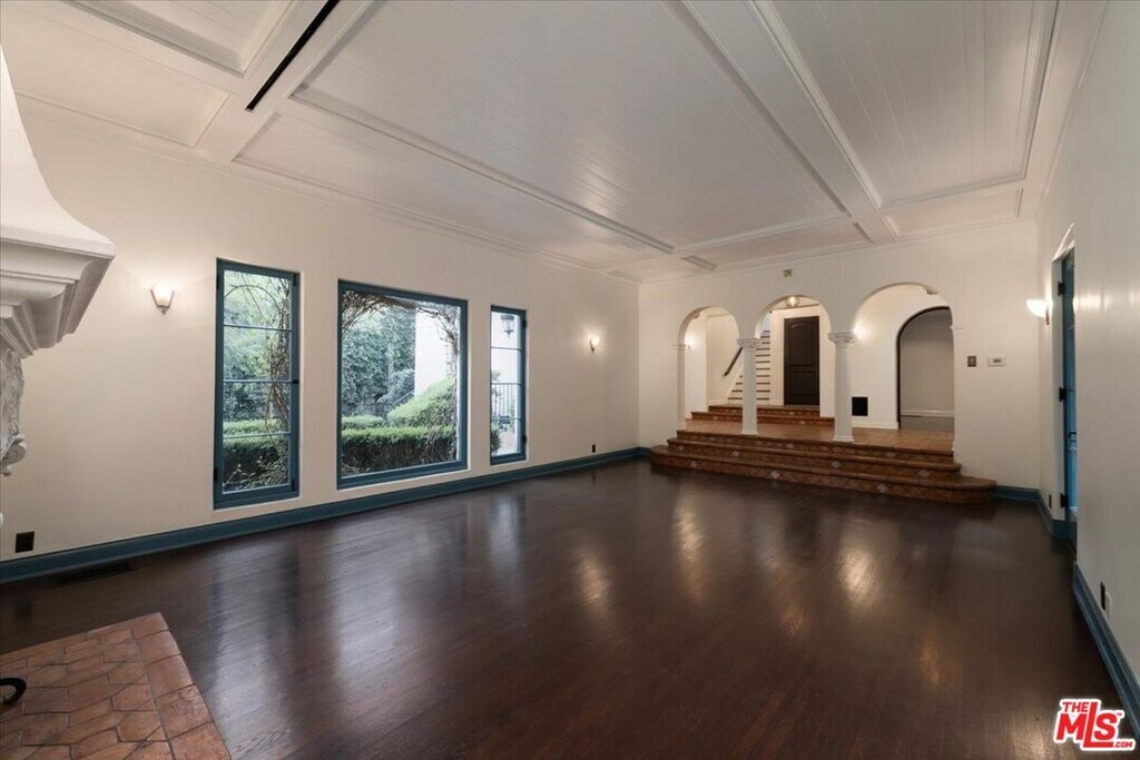Experience elevated living in the prestigious Outpost Estates. This stunning modern Spanish-style residence seamlessly blends contemporary sophistication with classic Hollywood allure, showcasing vaulted wood-beamed ceilings, beautiful original windows, and refined crown moldings. Three timeless arches lead to a dramatic step-down living room that opens to an ultra-private backyard sanctuary appointed with a black-bottom pool, outdoor sauna, covered loggia, and wonderful spaces designed for effortless indoor-outdoor entertaining. The gourmet chef's kitchen is outfitted with sleek natural stone countertops and top-of-the-line stainless steel Thermador appliances, offering both beauty and performance. The kitchen is open to an ample sized dining room with garden views. Upstairs you'll find four generously sized bedrooms and three impeccably designed bathrooms, highlighted by a luxurious primary suite boasting a spa-caliber bath with a claw-foot soaking tub, rainfall shower, and dual vanities. Additional premium amenities include a temperature-controlled wine cellar and dual-zone HVAC. This exceptional residence embodies style, comfort, and the best of Los Angeles living. Perfectly situated with convenient access to the trails of Runyon Canyon and all the surrounding communities have to offer. MLS# 25620215
