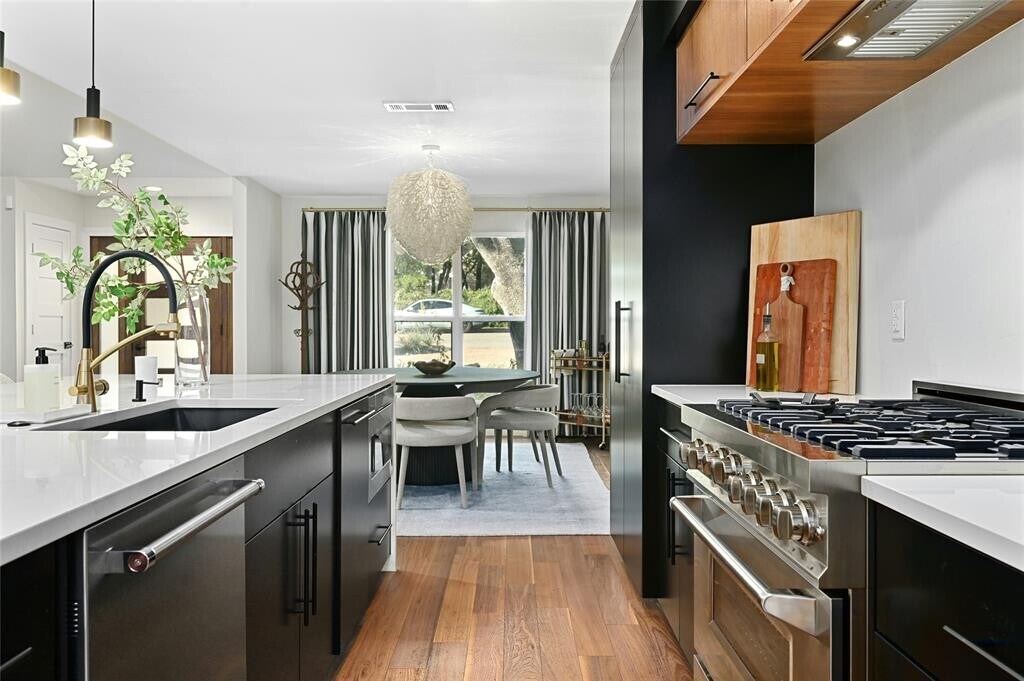 *Fully-Furnished Rental- 12-24 mo leases. All utilities, Google Fiber, & lawn care included. Additional Pet Fee is Non-Refundable* Nestled in the heart of Barton Hills, this immaculately renovated home is a true architectural gem, blending modern design with thoughtful functionality. Spanning three levels, it features extensive upgrades and sleek, contemporary finishes that elevate every corner. The open-concept main level is an entertainer's dream, anchored by a chef’s kitchen with premium appliances and a design that connects to the living room, dual dining areas, and the covered patio through oversized sliding glass doors. These stunning doors create the perfect indoor-outdoor flow for gatherings or relaxing evenings. The main level also hosts the primary suite, a private retreat complete with a cozy sitting area and fireplace. The ensuite is a showstopper, featuring a spacious vanity and a frameless glass partition separating the oversized walk-in rain shower. Two additional bedrooms share this level, accompanied by a stylish full bath. On the second level, you’ll find a 4th bedroom, a full bath, and a sprawling game room. From here, a striking spiral staircase leads to the third floor bonus room, where custom panoramic windows frames breathtaking views of the nature surrounding the home. A 4-panel sliding glass door opens to a covered balcony, making this space ideal for a tranquil home office or creative retreat. Outside, the elongated driveway leads to a side-entry garage, where you’ll discover a laundry room complete with a drop zone and dog wash—a thoughtful touch for animal lovers. Situated in prime Barton Hills, this home offers the ultimate lifestyle. Stroll to Barton Hills Elementary, explore the nearby Greenbelt, or experience the iconic Barton Springs Pool. With vibrant shops, restaurants, and entertainment moments away, you’re positioned to enjoy the best of Austin living.*Upon lease signing, 1/last mo rent, security deposit, pet fee/deposit due.* MLS ID 5842450