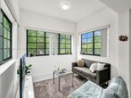 Spacious and bright 2-bedroom, 1-bathroom remodeled apartment, filled with natural light, in a boutique building just blocks from Miracle Mile and the best cafes, restaurants and shops of Coral Gables. This bright second floor residence offers lush greenery views from every window. Features include ceramic tile floors, stainless steel appliances, sound-proof windows and a sleek new bathroom with glass and stone finishes. In-unit washer/dryer, separate water and electric meters, and 1 private assigned parking space. Pet friendly. Two blocks from the award-winning Bachour bakery and cafe, and a block from target. Enjoy safety and tranquility, minutes from the Gables most exciting lifestyle and a quick drive to Brickell University of Miami and the airport.
