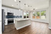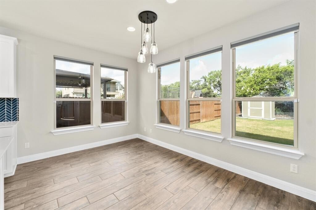 This 3-bedroom, 2.5-bathroom home in the Sweetwater community was built in 2020 by Pulte Homes and offers modern comfort throughout. The open floor plan features a spacious kitchen with gas appliances, a center island, and a dedicated study with French doors--ideal for working from home. The primary suite includes a walk-in closet, garden tub, and separate shower for a true retreat. Outdoor living includes a covered patio and a private upstairs balcony with sweeping Hill Country views. The home backs to a serene green space, providing added privacy with no neighbors behind you. Located within highly acclaimed Lake Travis ISD, residents enjoy exceptional community amenities including resort-style pools, scenic walking trails, a fitness center, and a clubhouse, all just minutes from Lake Travis, shopping, dining, and top-rated schools.