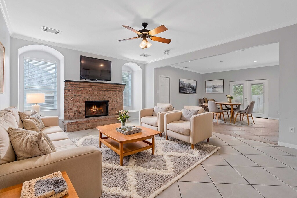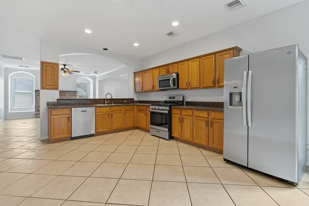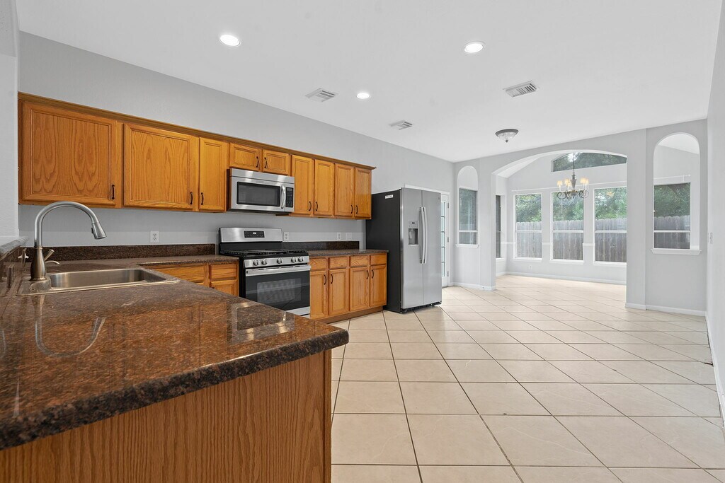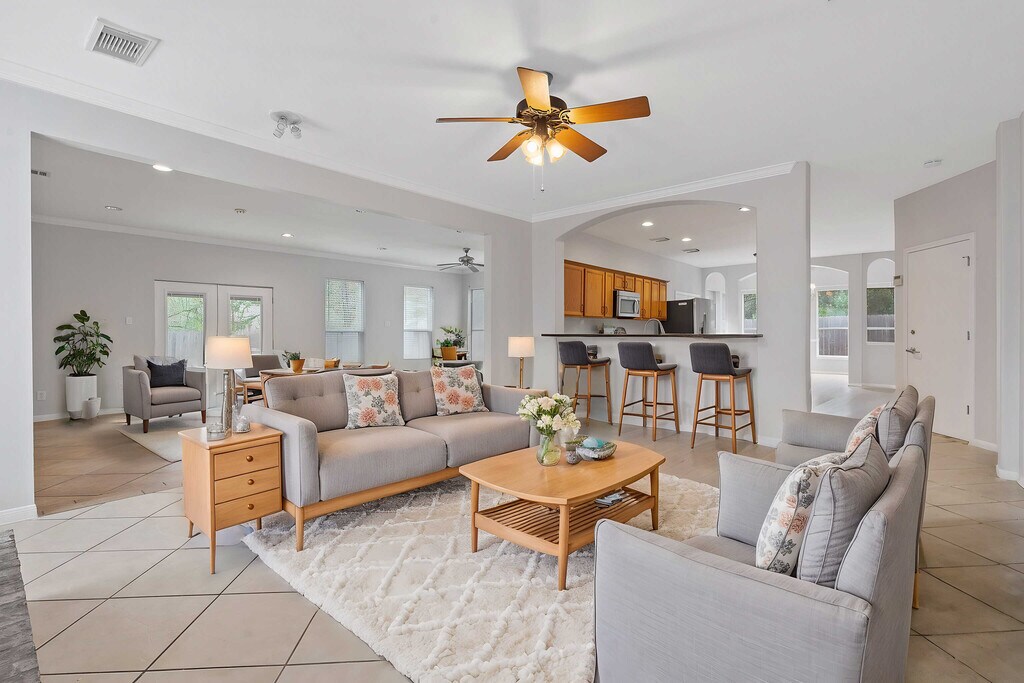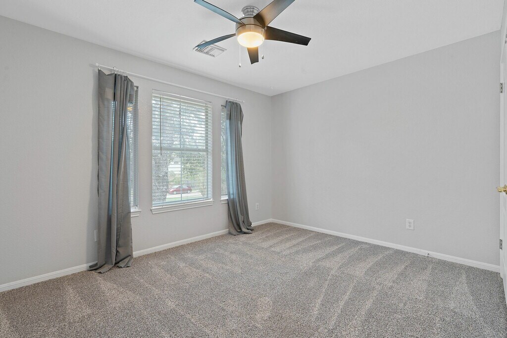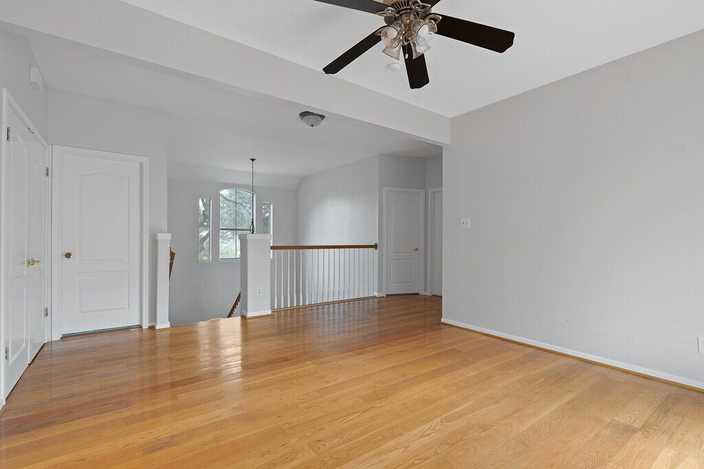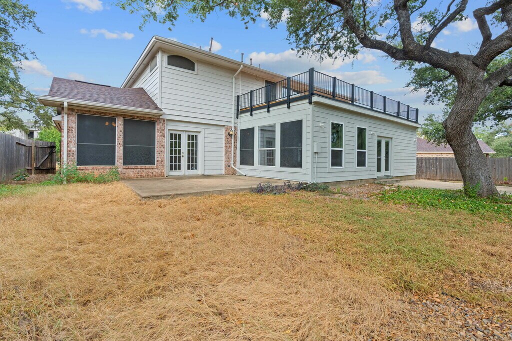 Welcome to 1902 Cupolla Mountain! This 3-bedroom, 2.5-bath gem spans 3,052 square feet and is nestled on a serene cul-de-sac, surrounded by mature trees. Minutes from Hwy 183, you’re positioned for easy commutes to Austin and close to fantastic parks like Milburn Park, Lakeline Mall, HEB Plus, and the area’s best restaurants. Step inside and find an open floor plan with multiple living spaces ideal for gatherings. The main living room offers a cozy fireplace and beautiful arched windows. Natural light fills the dining room, giving it a bright and airy feel. Located on the 1st floor, there is a room with a small closet which can serve as a home office, guest room, or even a 4th bedroom—the choice is yours! There is also an expansive climate controlled bonus room at the back of the home, making it perfect for a game room, homeschool space, or lounge area. Upstairs, a spacious loft area with wood flooring leads to a large, fenced balcony overlooking the backyard. It’s the ultimate treetop retreat for outdoor entertaining. The upstairs primary bedroom is a private sanctuary with an ensuite featuring a jetted tub, separate shower, dual sinks, and a vanity area. Two additional bedrooms and a full bath down the hall complete the upstairs space. The kitchen is ready for any culinary endeavor with granite countertops, stainless steel appliances, a gas range, and ample cabinetry, including multiple wall outlets. A laundry room with a washer and dryer is also included for convenience. Outside, enjoy two backyard patios, a three-car garage, and a large driveway! Zoned to highly-rated schools and pet-friendly. Don’t miss this beautiful, spacious home where you can spread out and make it your own! Available NOW!
