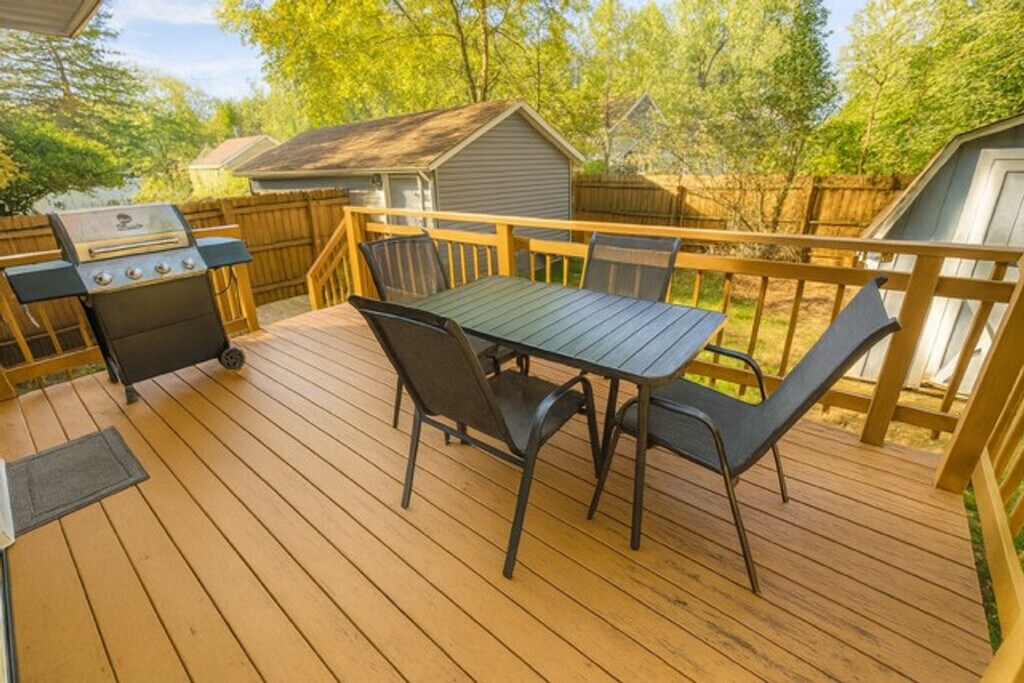 Feel at home in this cozy apartment featuring 2 bedrooms and 1 bathroom. The apartment features a large living room, a spacious kitchen stocked for cooking and dining, a full-size washer and dryer, a fire pit, a grill, a deck with outdoor furniture, and an unfinished basement with a ping pong table. The apartment also has a fully fenced yard. Garage parking is available. Well-behaved dogs are welcome with owner permission and a non-refundable fee. Located in a quiet residential neighborhood on a corner lot with a wooded view across the street, this apartment offers easy access to dining, shopping, and is just 15 miles from the Amazon facility. Smoking is not allowed indoors. Guests must be 24 to rent. A pre-arrival form and rental conditions must be signed prior to receiving access to the property. [SI]