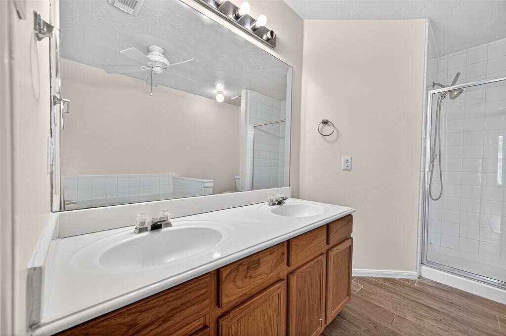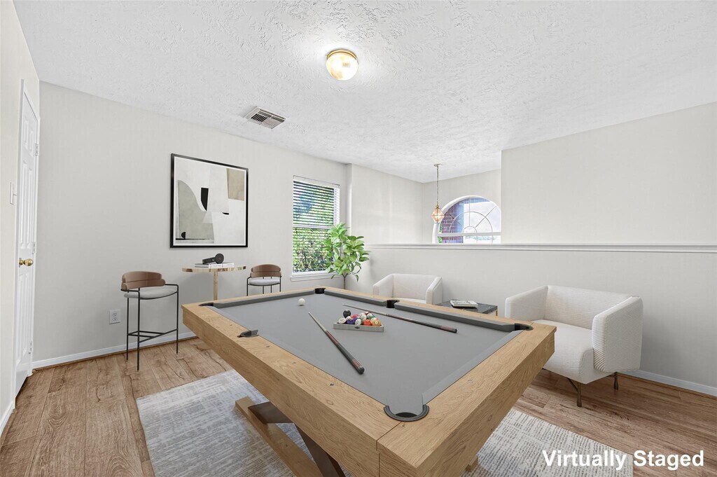 Thai TruongGreat location in a quiet and gated community! Featuring two story, 2 car garage, 4 beds, 2 1/2 baths with almost 1900 square feet of living space. This home is well maintained and ready for immediate move in. Living room has plenty of natural lighting, kitchen is open to the dining area. Also has a breakfast bar add some stools and take a seat enjoy the family conversations over a nice meal. No carpet in the house. Large primary bedroom up with high ceiling. Primary bathroom has a separate shower with a soaking tub, double sinks and walking closet. Recent updates: Roof is 3 years old, AC - 4 years old, upstair flooring 3 years. Fresh paint throughout. Easy access to I-45 and shopping centers. Schedule your appointment today.