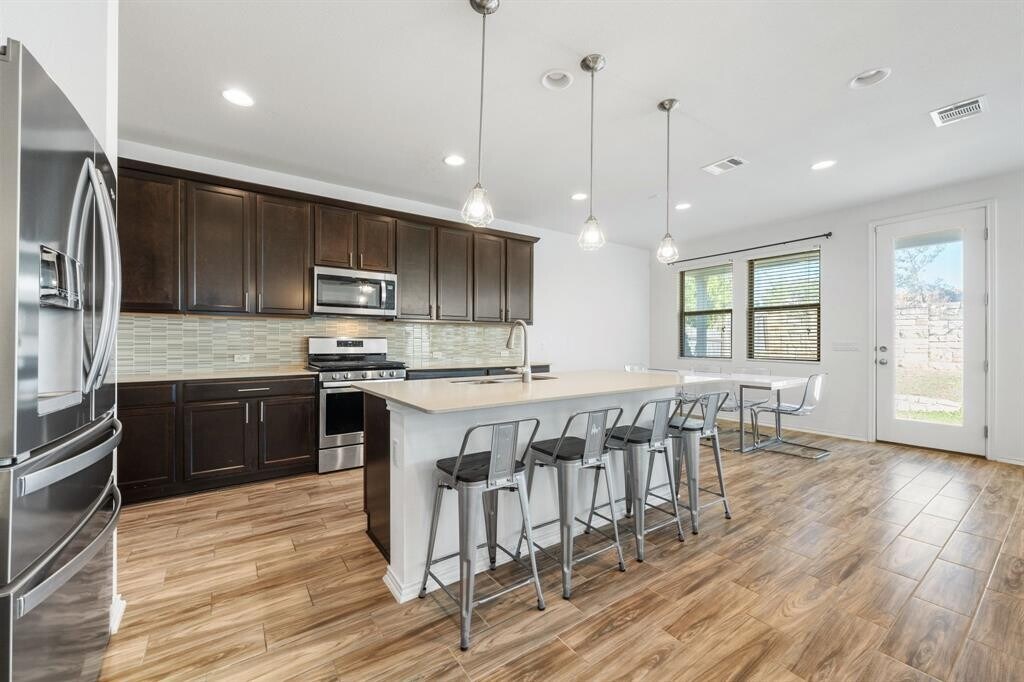 This two-story home offers a functional layout with all main living spaces on the first floor, including the living room, dining area, kitchen, and a guest bath. Upstairs, you’ll find three bedrooms, including the primary suite, and a conveniently located laundry room. The kitchen features a center island and generous cabinet space, opening to the living and dining areas for easy everyday flow. Wood-loo tile flooring spans the main level, with carpet in the upstairs bedrooms for added comfort. Refrigerator, washer, and dryer are all included, making move-in simple. The fenced backyard provides private outdoor space, and the attached two-car garage adds practical storage and parking. Front yard maintenance is handled by the HOA for added convenience. Ideally situated with quick access to major corridors including I-35, SH-45, and Parmer Lane, this home offers easy connectivity to Downtown Austin, The Domain, and top employers throughout the North Austin tech corridor. The Wells Branch area also features nearby parks, trails, and community amenities, with surrounding retail centers offering a wide range of everyday shopping, dining, and services.
