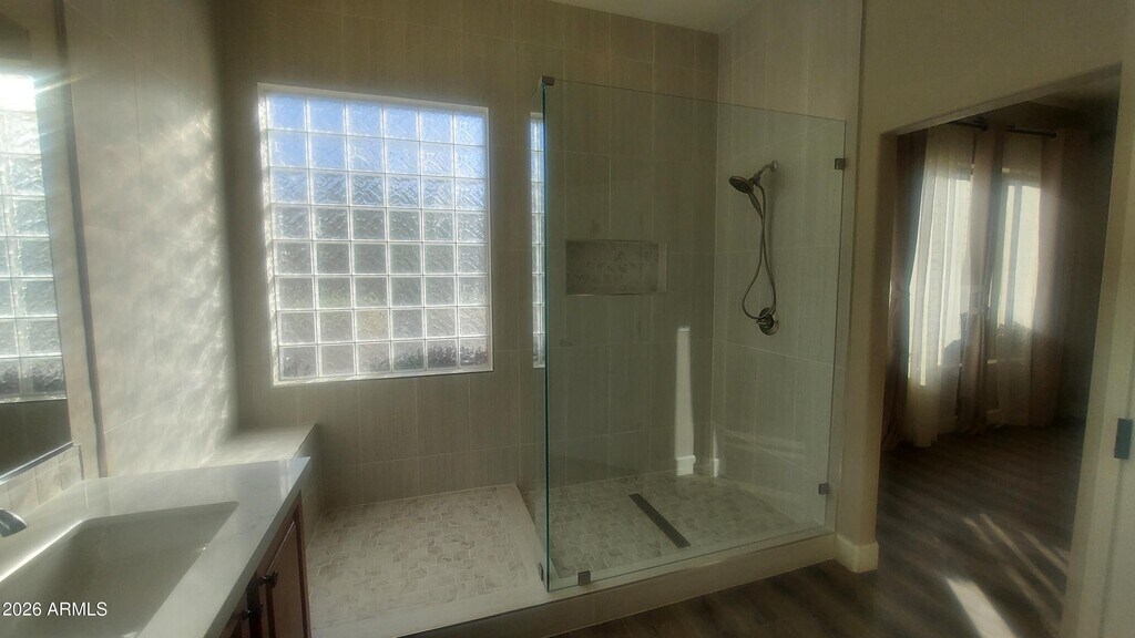 Gorgeous South Chandler home on a large corner lot! Three bedrooms plus a spacious office! Vinyl plank flooring throughout the entire home! High ceilings and plantation shutters! The beautiful island kitchen has quartz counters,highly upgraded appliances (including a state-of-the-art vent),and flows into the family room with decorative fireplace! Huge master bedroom with remodeled bath,including a gorgeous walk-in shower! Three-car garage! The private backyard has a lemon and an orange tree,and lush faux grass! There's even a built-in BBQ! Reverse osmosis and water softener! Washer and dryer included! Close to great shopping and restaurants! Hurry to this one!