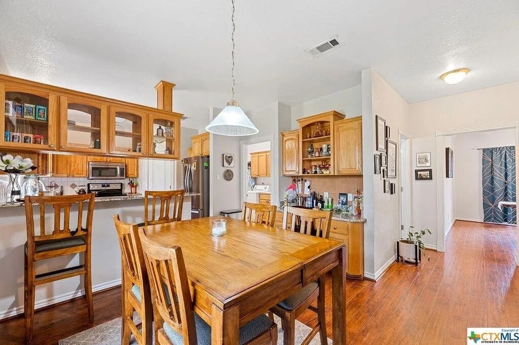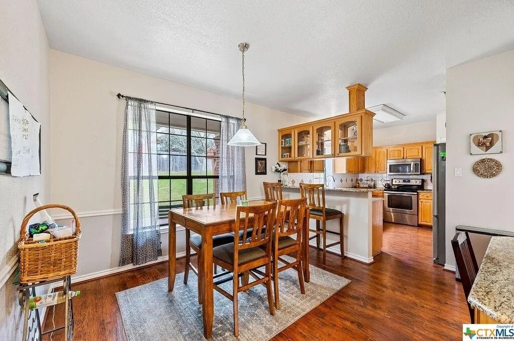 Beautiful, clean, and well-maintained 4 bedroom, 2.5 bathroom home in a very quiet Harker Heights neighborhood. This home offers a huge 2-car garage, a separate laundry room, and great storage with an accessible attic. Inside you’ll love the spacious layout with a large formal dining room plus a separate breakfast area. Outside, enjoy a big backyard with a pergola—perfect for relaxing or entertaining. A covered front porch adds a welcoming touch. The home is situated away from high-traffic and commercial areas, offering a more private and peaceful living environment while still being convenient for everyday needs. Nearby access to the lake area and hiking trails, plus shopping and restaurants, provides a great balance of tranquility and accessibility. Located in Harker Heights and only about 3 miles from Dana Peak Park. Pets are welcome. Backyard is partially fenced. Highlights: 4BR / 2.5BA • Huge 2-car garage • Large backyard + pergola • Formal dining + breakfast room • Laundry room • Accessible attic storage • Covered front porch • Quiet neighborhood