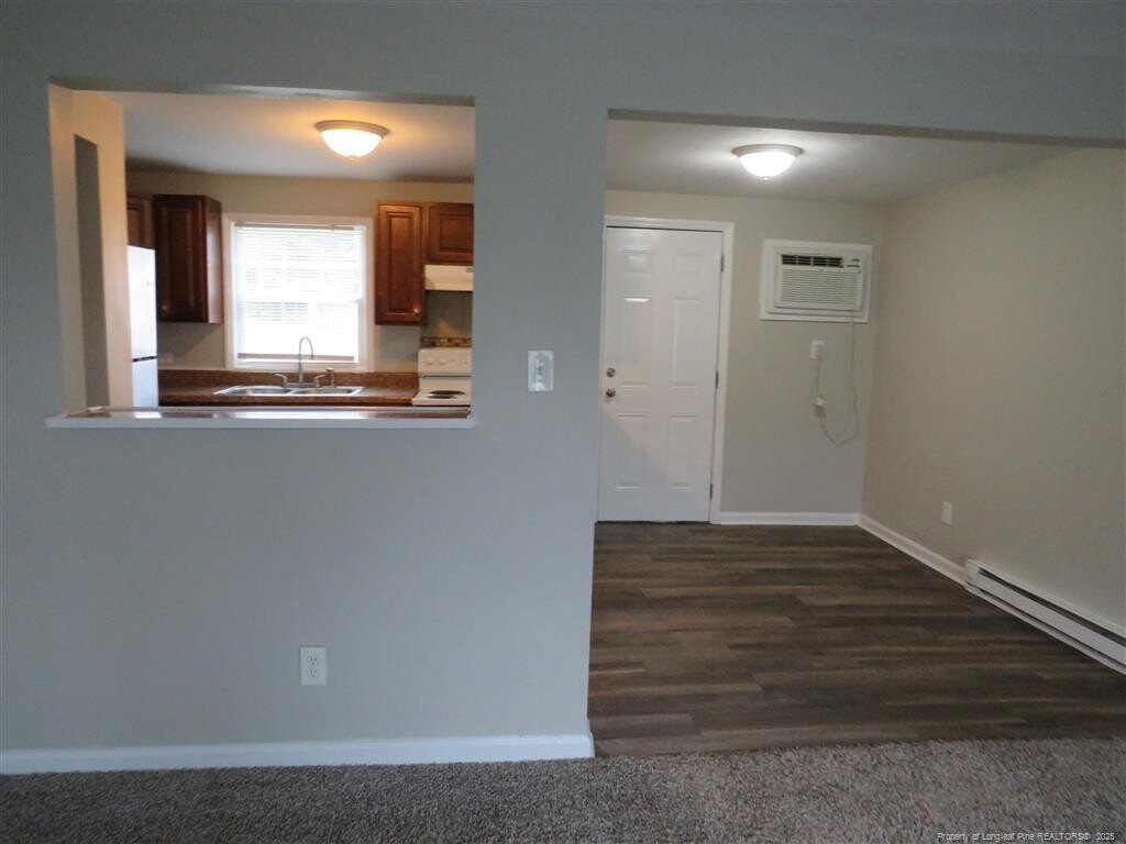 Great 2 bedroom 1 bath updated two story Townhouse in the gated community of King George. Great room with carpet and loaded kitchen with LVP flooring, custom cabinets, tile floor and solid surface counter tops. Two bedrooms upstairs also have carpet. Bathroom has tile floor, tub shower combo and raised vanity. Covered porch out back. Approx 800 sq ft. Must See! $25/month fee covers trash pick up and sewer. Call ext 1 or email to apply.