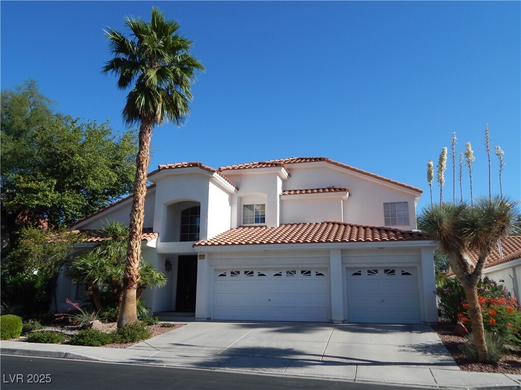This spacious Green Valley home will not last long! You enter this home into a formal living room with a vaulted ceiling, 3-way gas fireplace and a separate formal dining room. The kitchen is upgraded with granite counters, stainless steel appliances and a walk-in pantry. It overlooks the downstairs family room and wet bar. The primary bedroom is also located downstairs and has a huge walk in closet plus French doors leading to the back patio. There is a large laundry room that has a convenient sink and cabinets. Upstairs features a large loft area perfect for an office or second family room. The secondary bedrooms are also upstairs. The backyard features mature landscaping and separate patio areas. The 3-car garage is also a plus. This home is located in a gated community, has convenient access to the 215 freeway, Green Valley Ranch and The District. Shutters, upgraded flooring and large rooms make this home one you won’t want to miss! New solar system keeps electric costs very low.