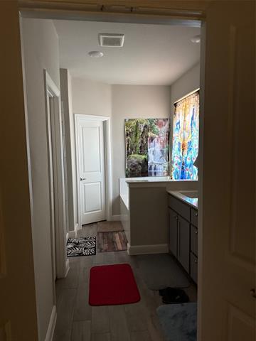 Gorgeous 2-story D.R. Horton home in the highly sought-after master-planned community of Pecan Square in Northlake, zoned to Northwest ISD! This stunning floorplan offers 5 bedrooms, 3 bathrooms, and a thoughtfully designed layout. The modern chef’s kitchen features quartz countertops, stainless steel Whirlpool appliances, a gas range, pendant lighting, an oversized island, and a spacious walk-in pantry—perfect for entertaining and everyday living. The open-concept design flows seamlessly into the inviting living area with a cozy corner gas fireplace. The primary suite is located on the first floor and offers a relaxing retreat with a garden tub, separate walk-in shower, and a large walk-in closet. Additional guest bedrooms and a full bath are also conveniently located downstairs, while upstairs includes a private bedroom, full bath, and a spacious game room. Designer upgrades include tiled entry, living, hallways, and wet areas, along with quartz vanities in all full baths. Enjoy modern living with Home is Connected and Canopy Smart Home Technology. Step outside to a covered back patio with a full sprinkler system and professional landscaping package. Residents enjoy resort-style amenities including pools, playgrounds, clubhouse, fitness center, and more. A must-see home in a vibrant community!
