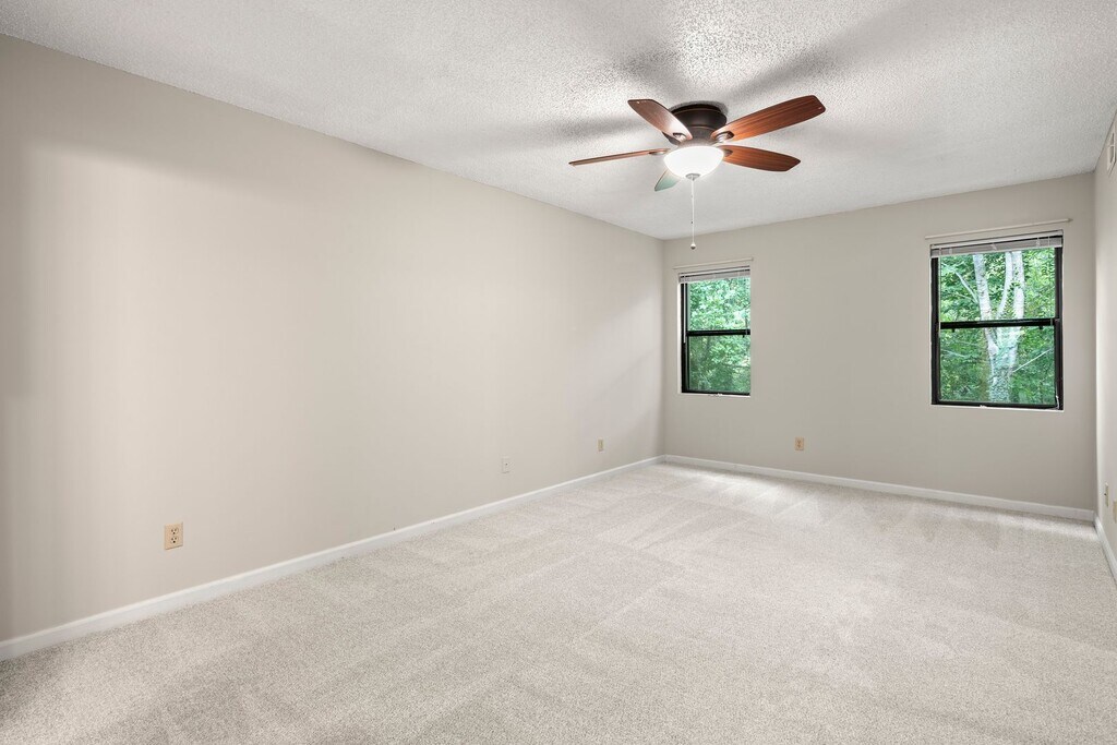 Great condo in a convenient East Asheville location! The Cloisters is an attractive, well-groomed community with amenities including a pool, gated access, a clubhouse, fitness center, and tennis courts. The living room features a cozy gas fireplace and sliding doors to a screened porch with a ceiling fan, storage closet, and nice wooded views. The formal dining room is separated by a partial wall, and there's a small breakfast nook in the kitchen. Kitchen appliances include the dishwasher, electric range, refrigerator, and built-in microwave. Each bedroom includes a ceiling fan, good closet space, and bathroom access. The primary bedroom includes two closets and an en suite bathroom with a shower and a large single-sink vanity. The second bathroom has a combination shower/ bathtub and doors for access from the second bedroom and from the hall. The washer and dryer installed in the hall laundry closet will remain for tenant use but will not be repaired or replaced by the homeowner. Central gas heat and central electric air conditioning. Tenant responsible for all utilities including electricity, natural gas, and water. Plentiful parking with stairs down to the covered front entry. Association restrictions state The Cloisters are available as single family residential purposes only. No pets are permitted in this unit; no dogs are permitted in The Cloisters. No smoking. No cosigners.