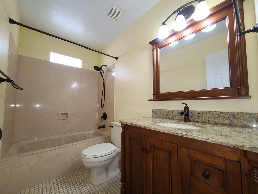 This 3 bedroom, 2.5 bath home has it all. Upgraded stucco exterior, side entry garage, porch at the front of the house, 2 driveways and sound side access. Large living area with fireplace and french doors to access the pool area. Beautiful kitchen with breakfast bar, granite countertops, stainless steel appliances and eat in area. Home boasts a large master bedroom with french doors leading out to the lanai and enclosed in ground pool. Master bath features a jacuzzi tub and separate shower with double shower heads. Back bedroom has access to a half bath that also has entry from the pool area. *Pool service and lawn service are included in the rental amount.