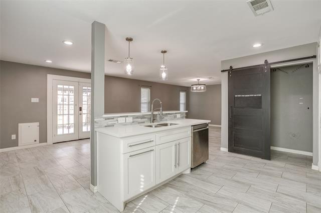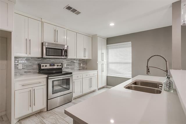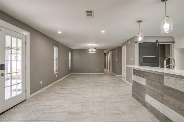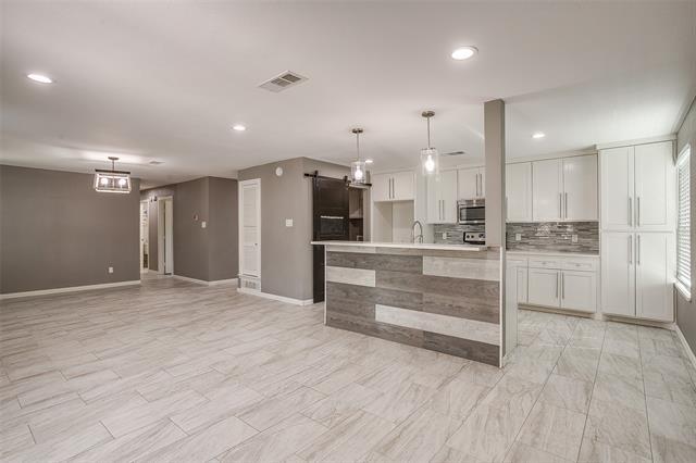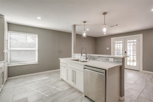 This stunning, well-maintained home features a front porch, 4 bedrooms, 2 baths, and a spacious open floor plan that creates a bright, airy atmosphere. Beautiful tile work and decorative lighting throughout make this home move-in ready. No carpet! The kitchen, with an island, quartz countertops, and stainless steel appliances, is perfect for entertaining. Step outside to a large backyard oasis with a covered patio and mature trees, offering an ideal gathering spot for family and friends. The property also includes a shed and a 20x12 outdoor storage building with electricity. Recent upgrades include new windows for efficiency, cordless blinds, a sprinkler system, new attic insulation and lighting. Conveniently located in the heart of Bedford and within the HEB ISD, the home provides quick access to Central Dr, TX-121, and TX-183, just minutes from a variety of dining, retail, and medical facilities. Pets allowed, no more then two, under 25 lbs. Non refundable deposit- per pet required. no dangerous breeds. NO smoking.
